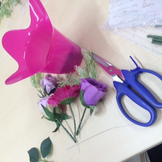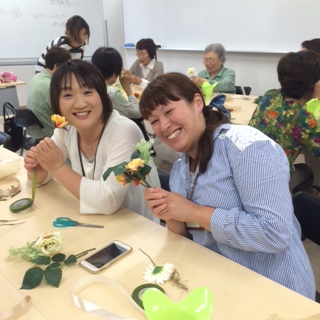 17名の皆様に参加いただき、造花を使っての作品つくり❀