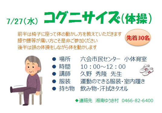 次回は、7月27日(水)10:00~ コグニサイズです。