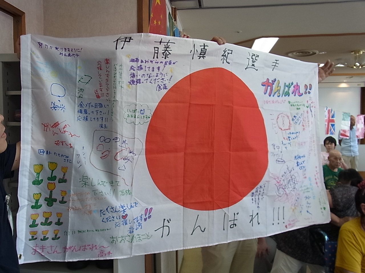 壮行会では、利用者の皆さんで作成した横断幕をプレゼント。