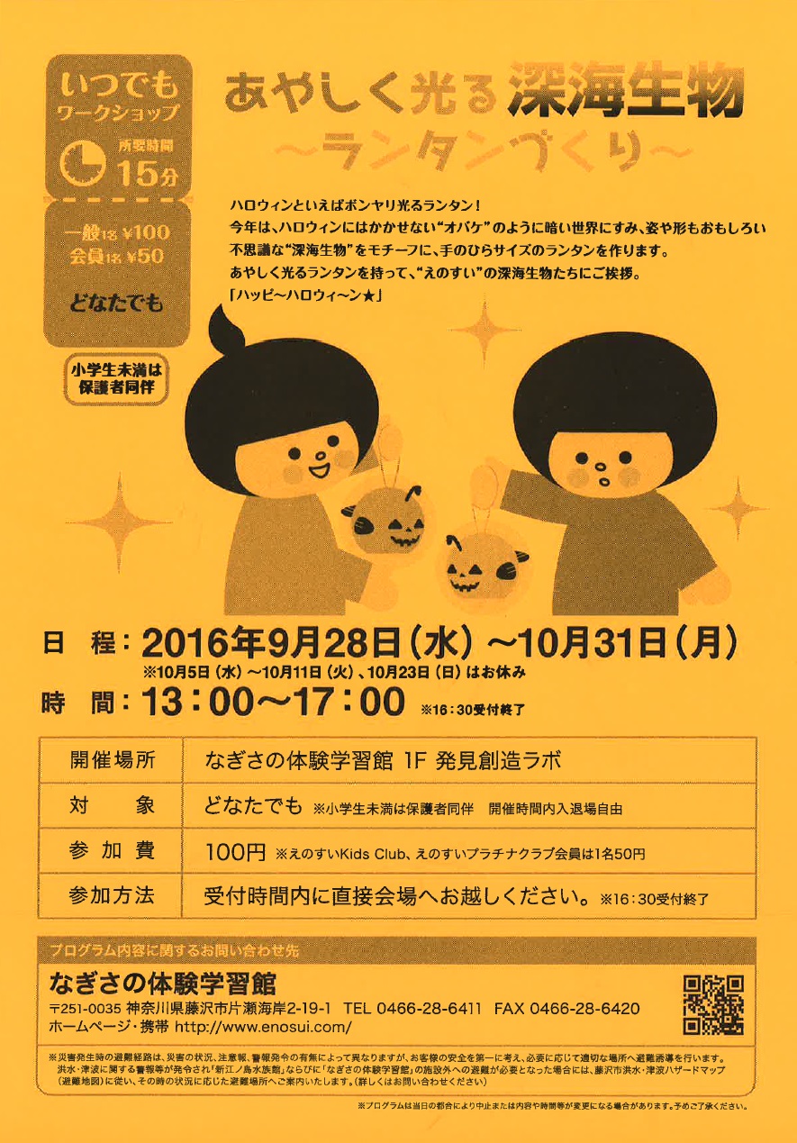 【あやしく光る深海生物~ランタンづくり~】という体験学習プログラムが行われます!