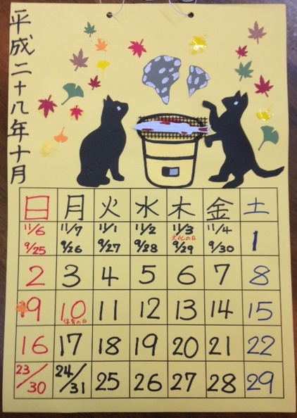 湘南ゆうき村デイサービスセンターでは、毎月月末に、翌月のカレンダー作成を行っております。