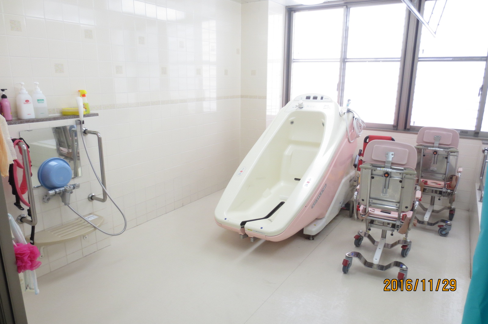 車いすを利用されている方でも安心して入浴を楽しめます。↓