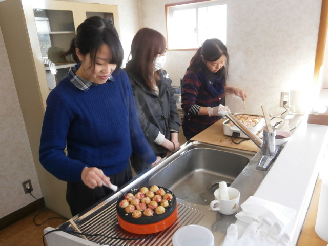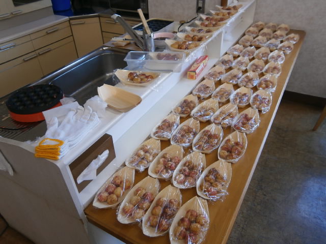 初めてたこ焼きを作る職員が多い中、朝から職員総出でたこ焼きを作り、無事に300個作り終えることが出来ました。