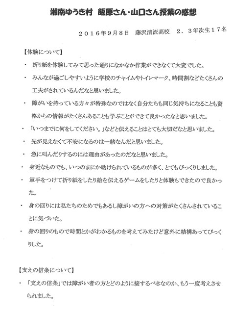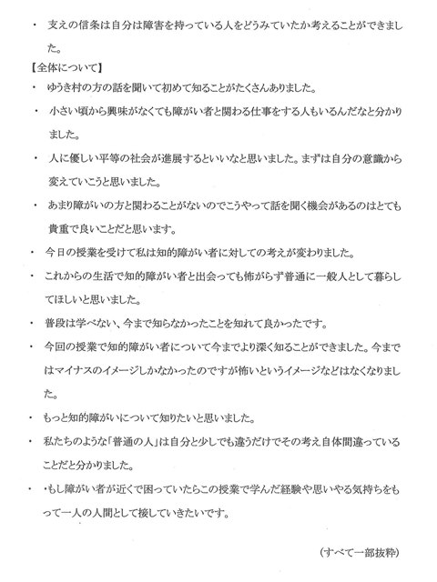 感想を読ませていただき、障がいの有無に関係なく、身の回りにある情報がなければ、自分たちでも不安に繋がることが一緒であること、学校やバイト先...自分たちが日常生活の中で活用している物が沢山あったことに気付くことが出来た時間だったと思います。