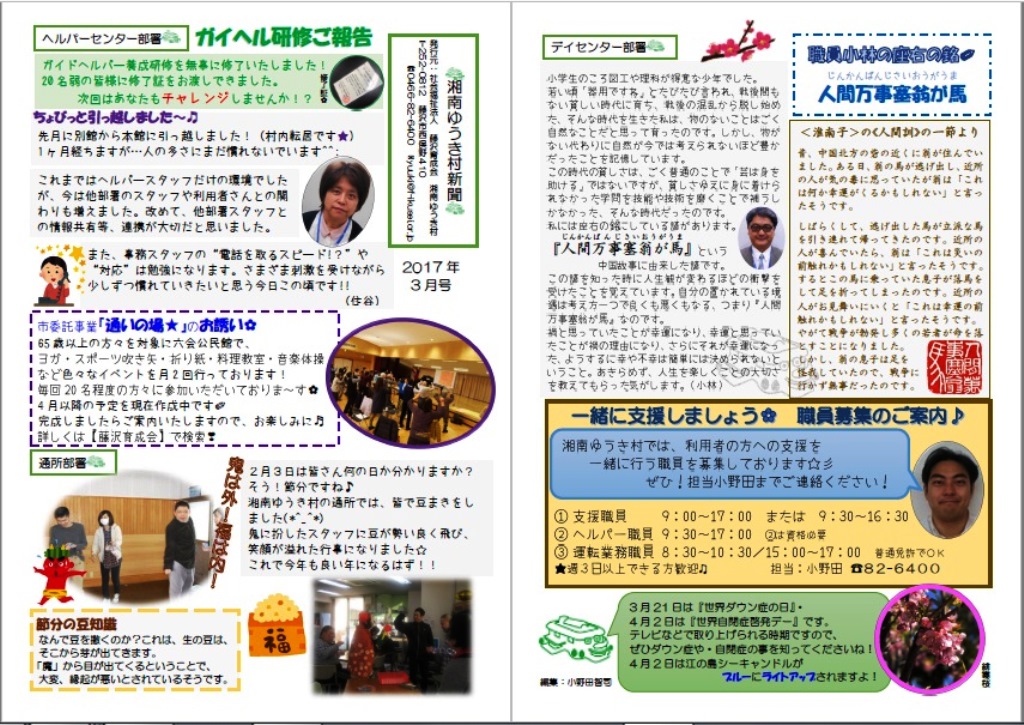 「湘南ゆうき村新聞」3月号を作成いたしましたので、お届けいたします☆