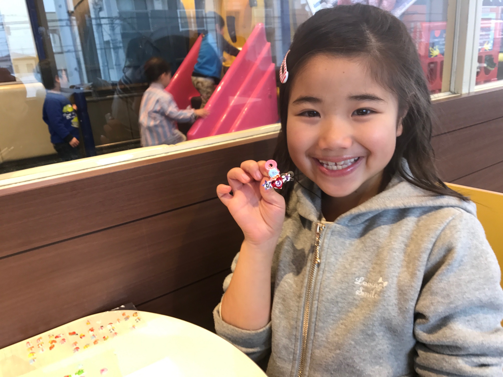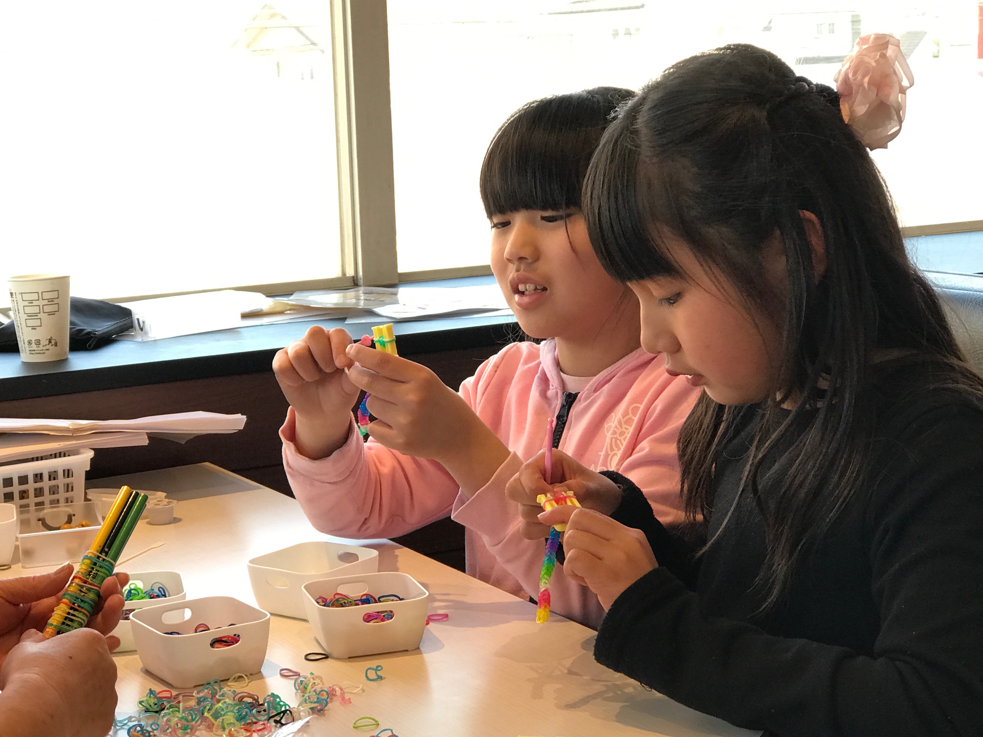▼同じお子さんたちが輪ゴムアートとビーズボールと二つのプログラムを楽しみました。