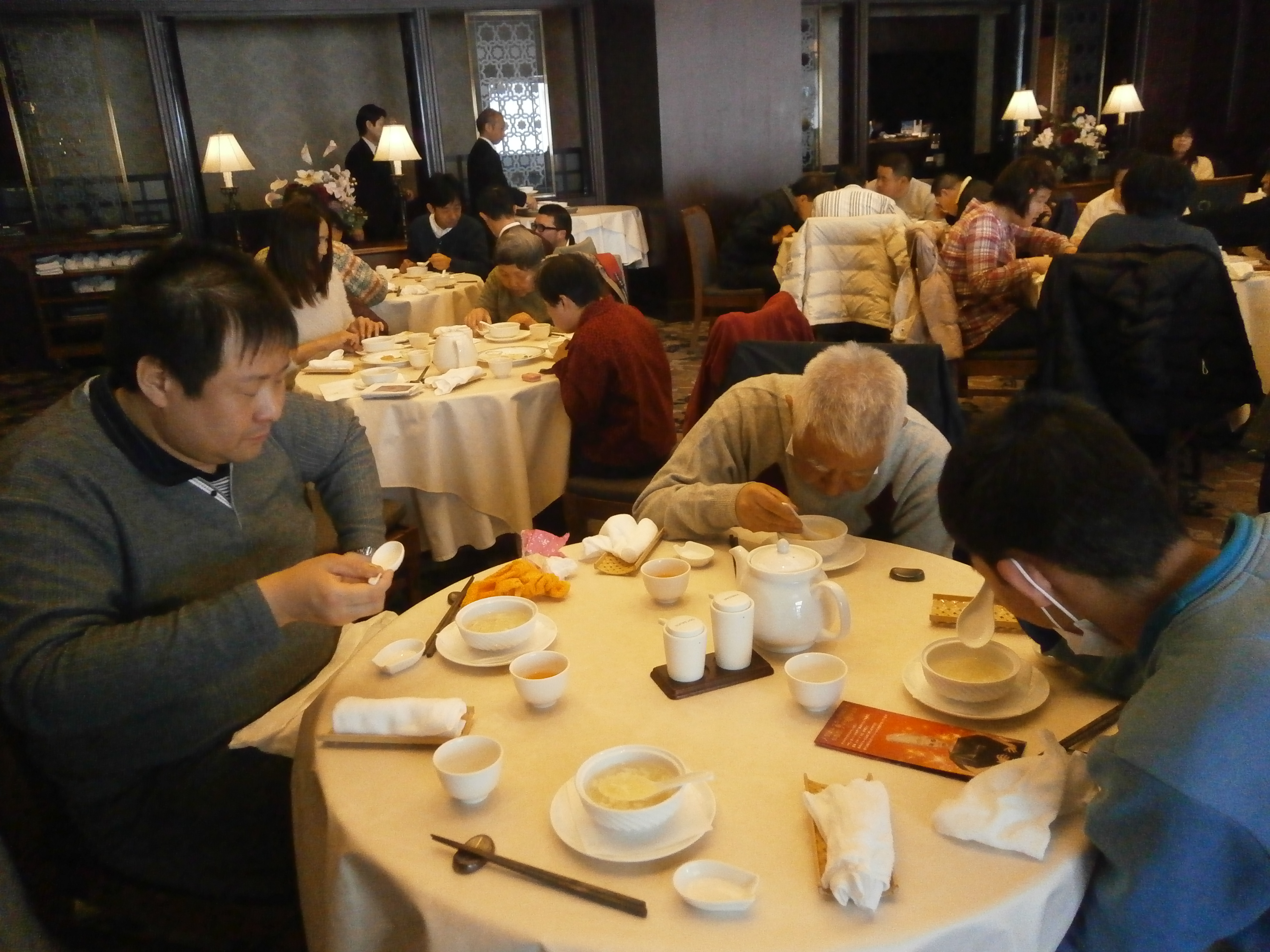 次に『ホテルグランドニッコー東京台場』に徒歩で移動。道中、レインボーブリッジを見ながら各々のペースで昼食会場に向かいました。昼食は、ホテル内にある高級中華レストランにてコース料理を頂きました。料理内容はまさに『量より質』で"フカヒレスープ"、"北京ダック"など高級食材を駆使したお料理を堪能しました。美味しいことはもちろんですが質を重視しただけあってちょっと物足りなさはあったかも...