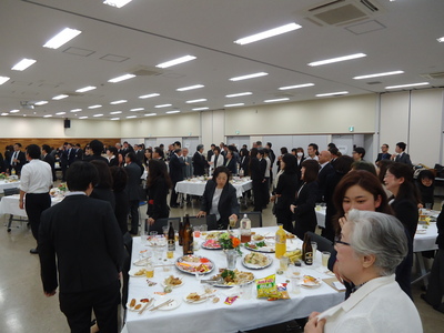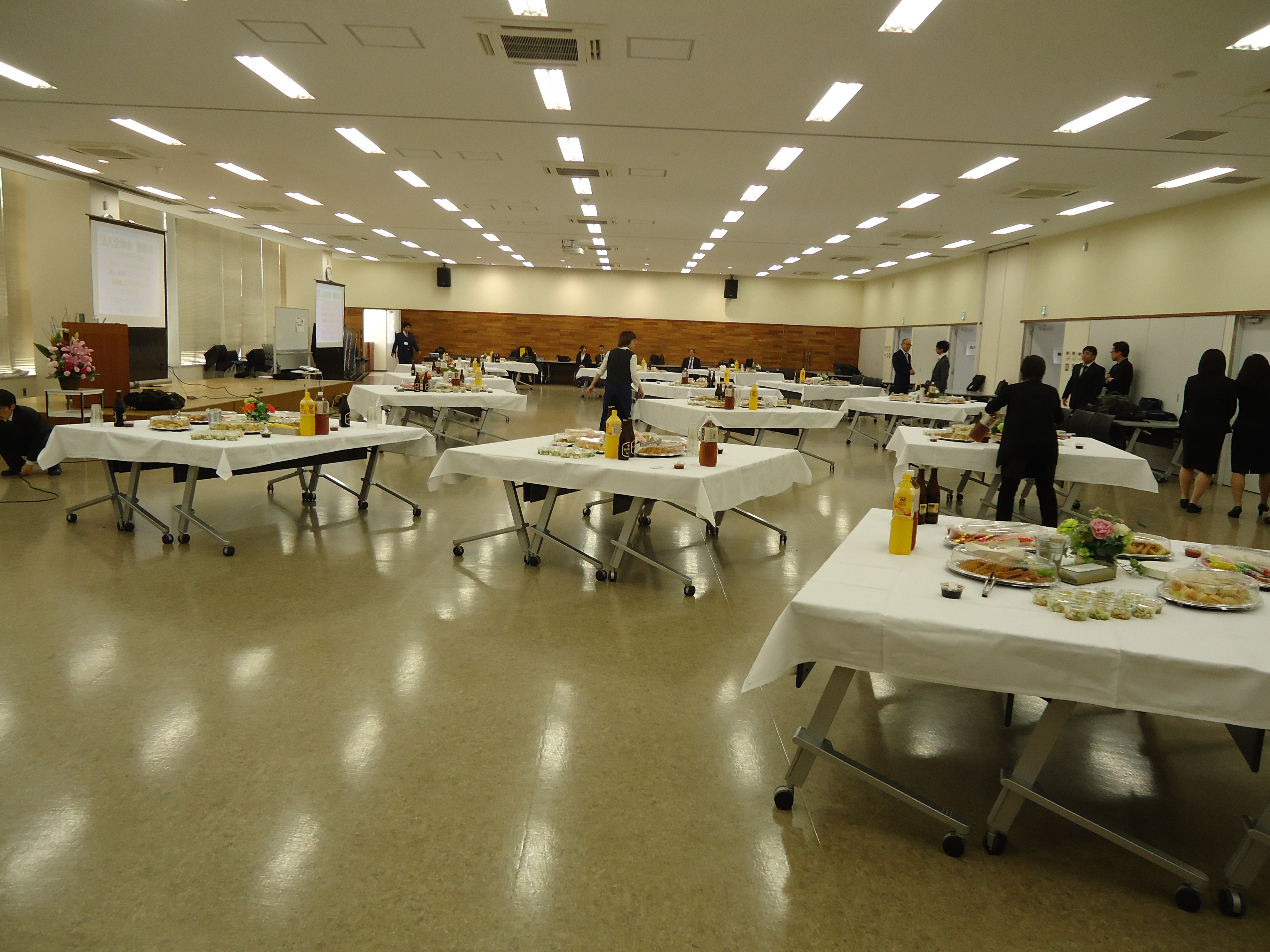 約250名の法人職員が、普段なかなか話す機会が少ないので、参加者皆で「楽しもう」と思い、講義形式の会場を職員の協力を得て、ものの40分位で会場がパーティー形式に変わり、参加者全員で"懇親"をしました。