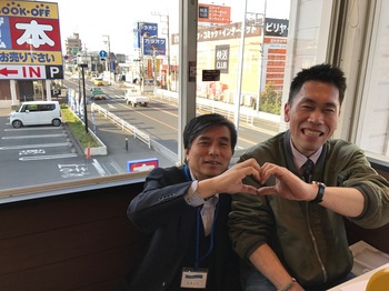 ▼さっしーさんとばやしこくんのツーショットです。二人でハートを作ってます。