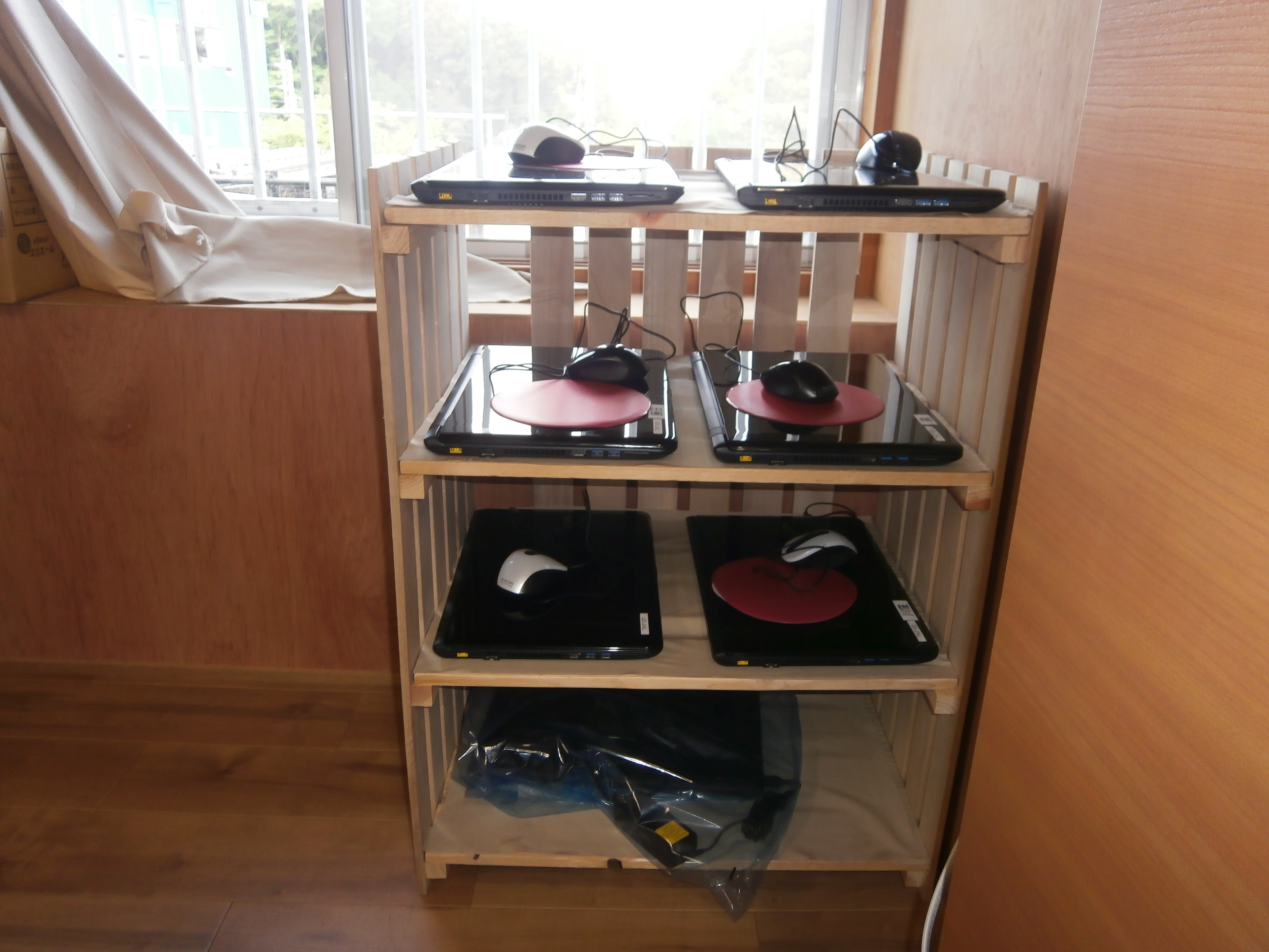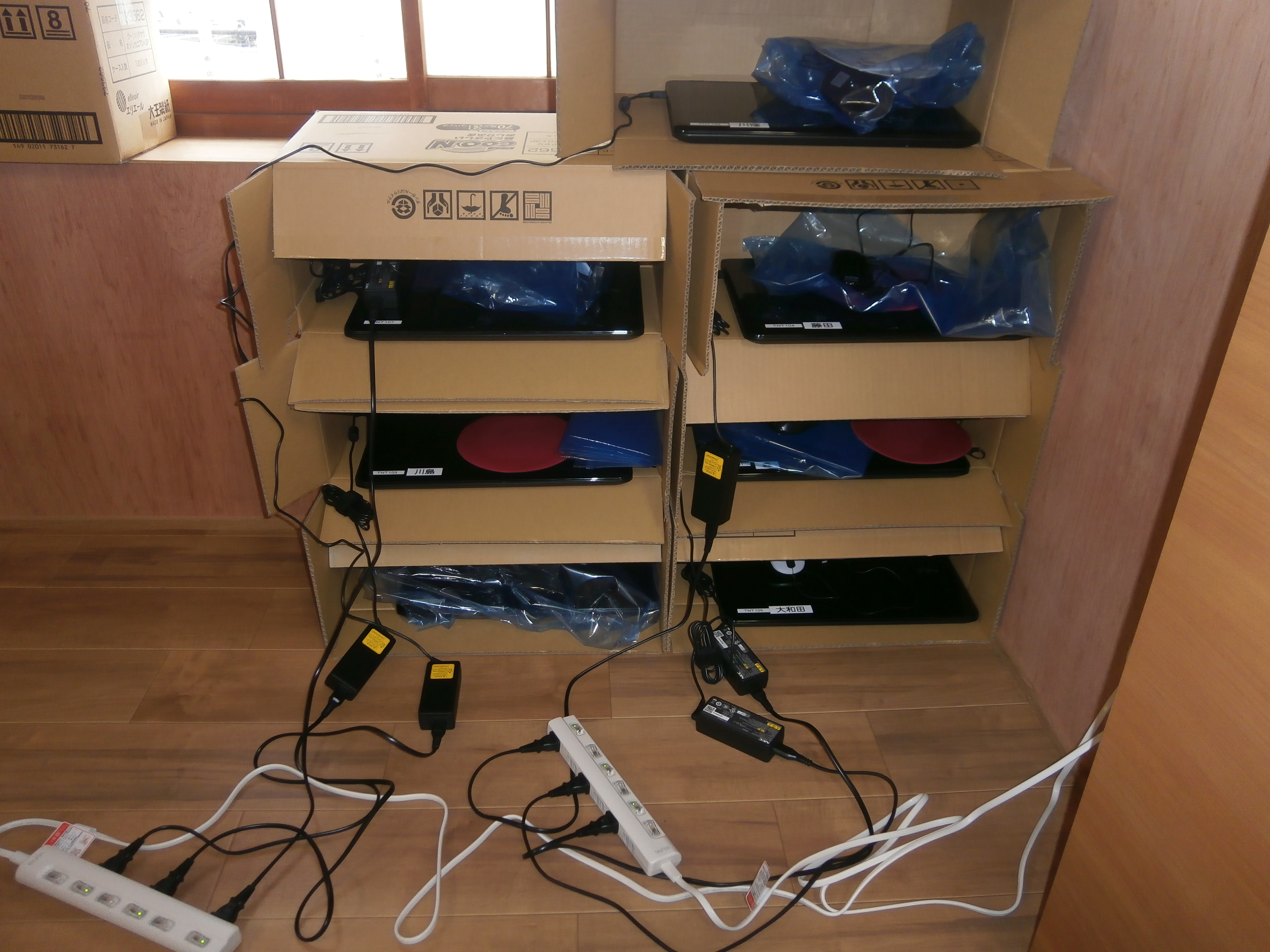 しかし、パソコンを入荷したものの、収納する場所がなく、当初はこんな形でした。