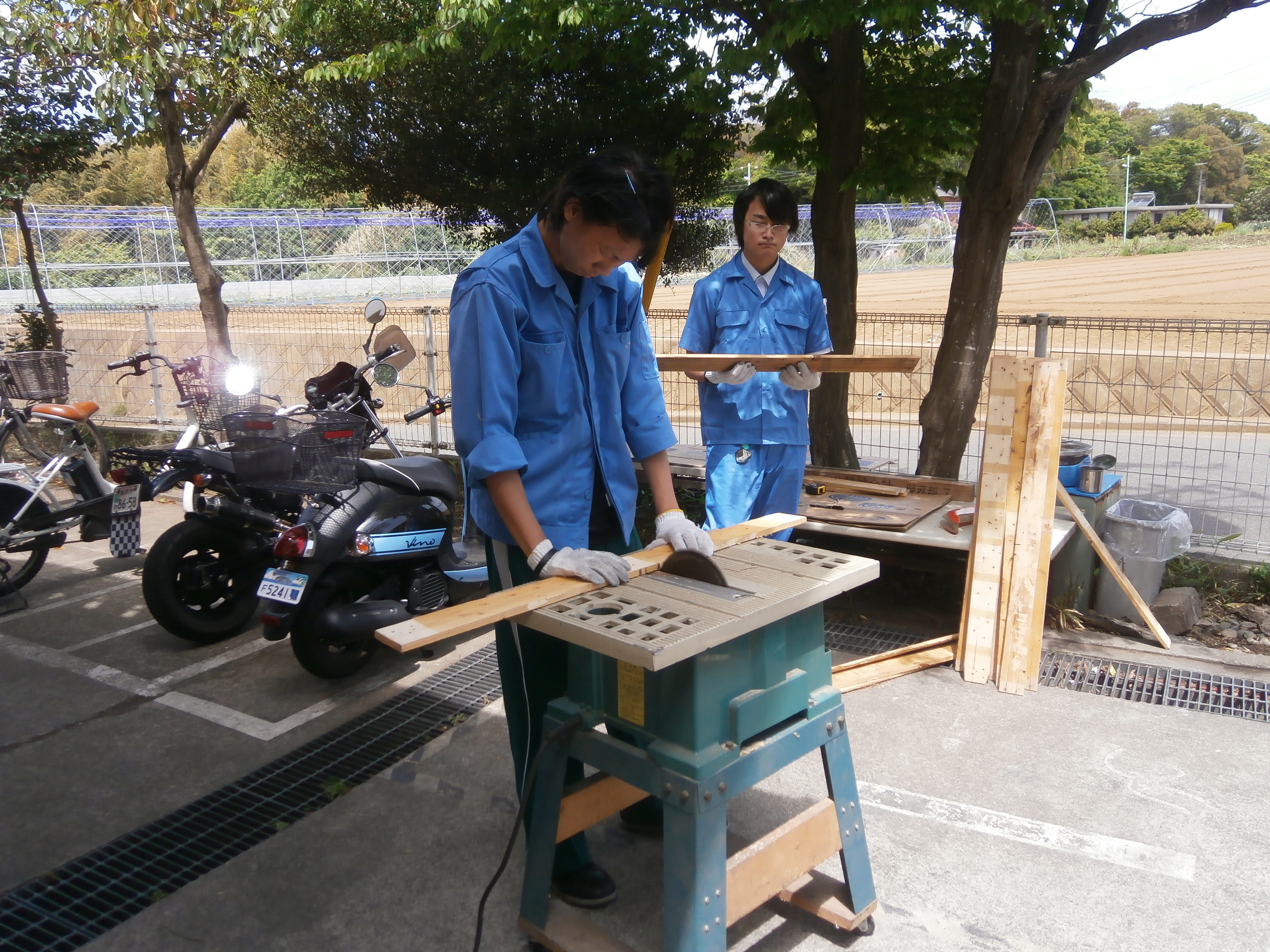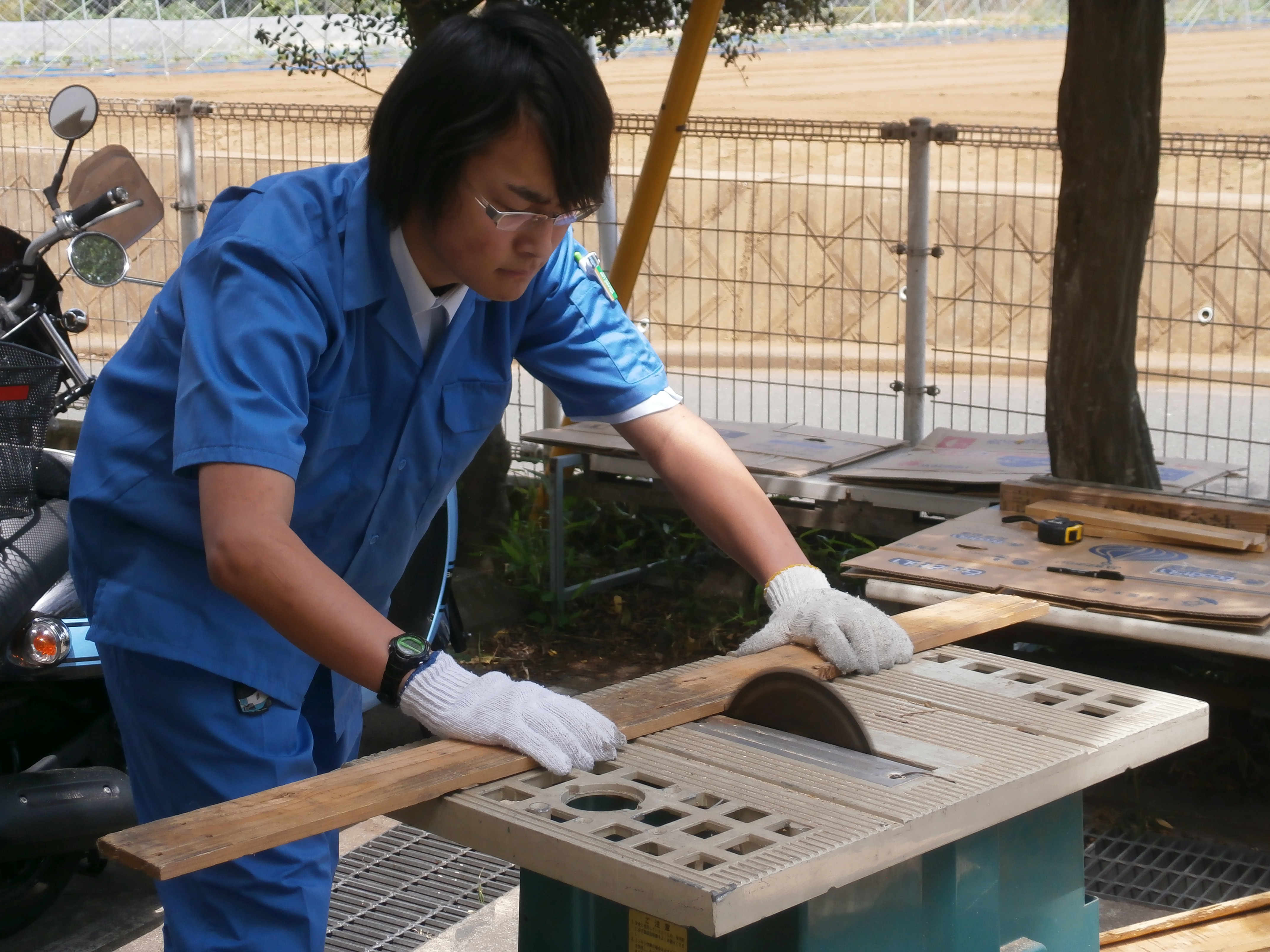 買い出し班と木材の加工班に分かれて、棚作りスタート!