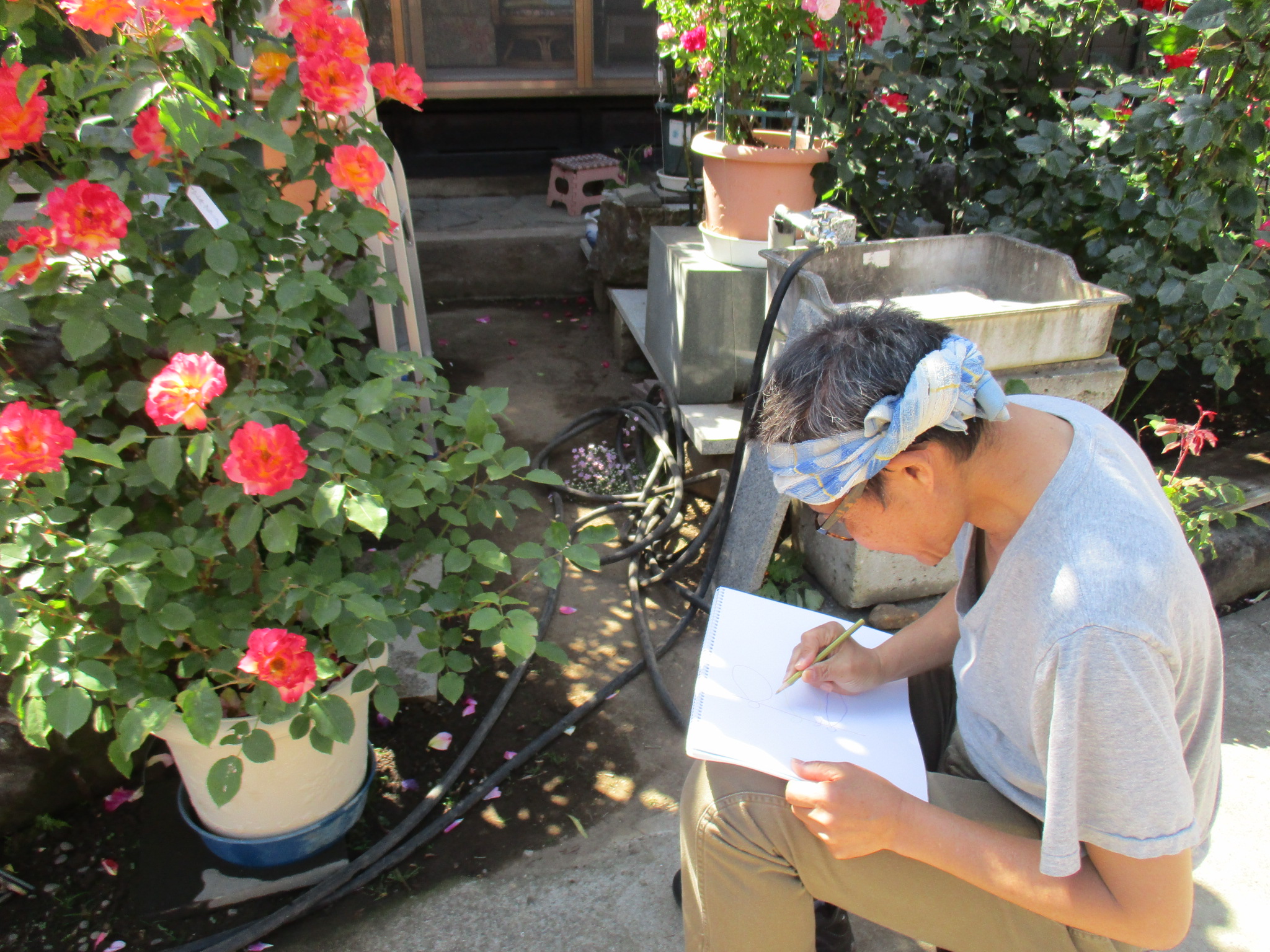 よし介工芸館のアトリエとお花の会のメンバーで5月16日(火)は大庭城址公園、23日(火)には大庭石材さんへバラのスケッチに行ってきました。