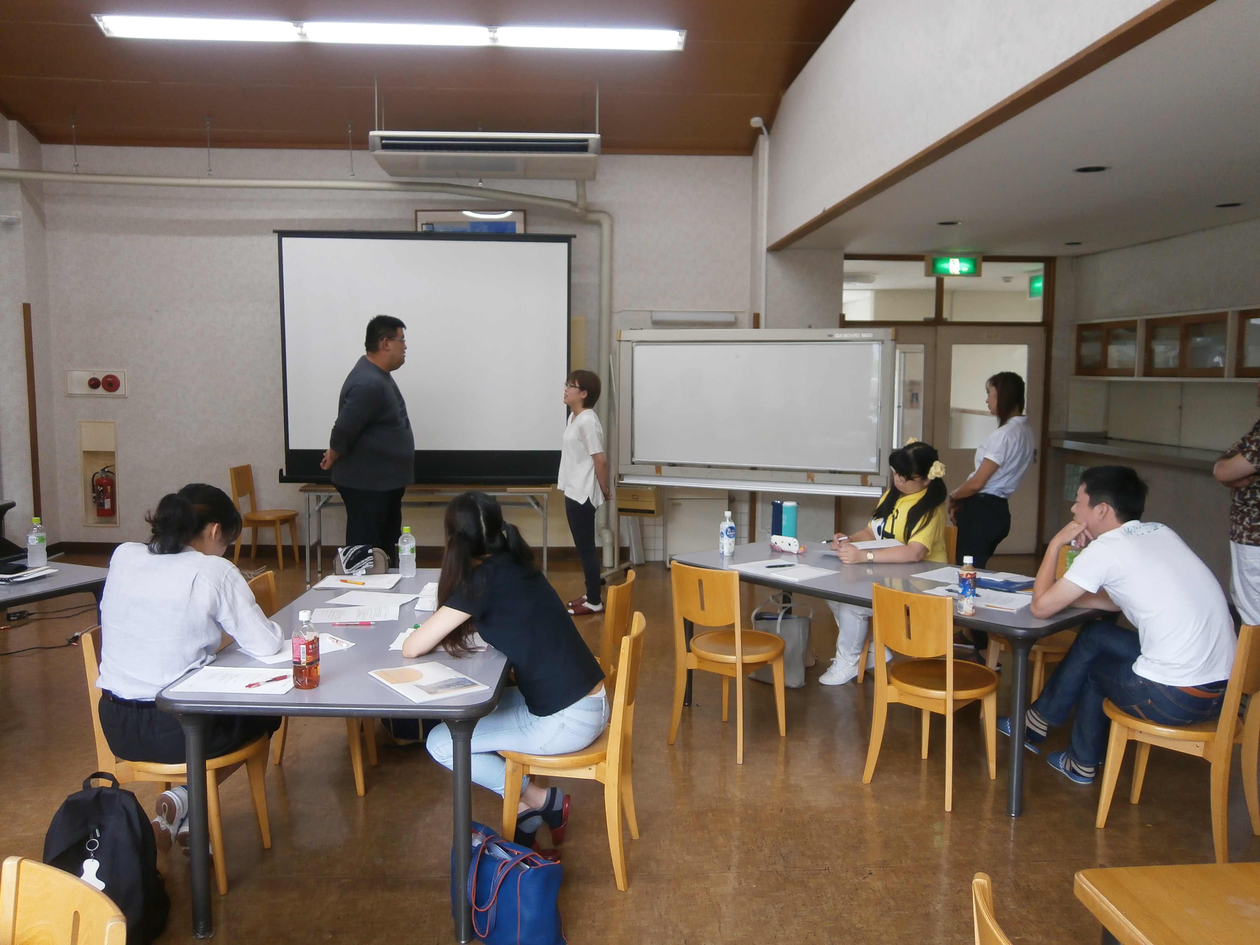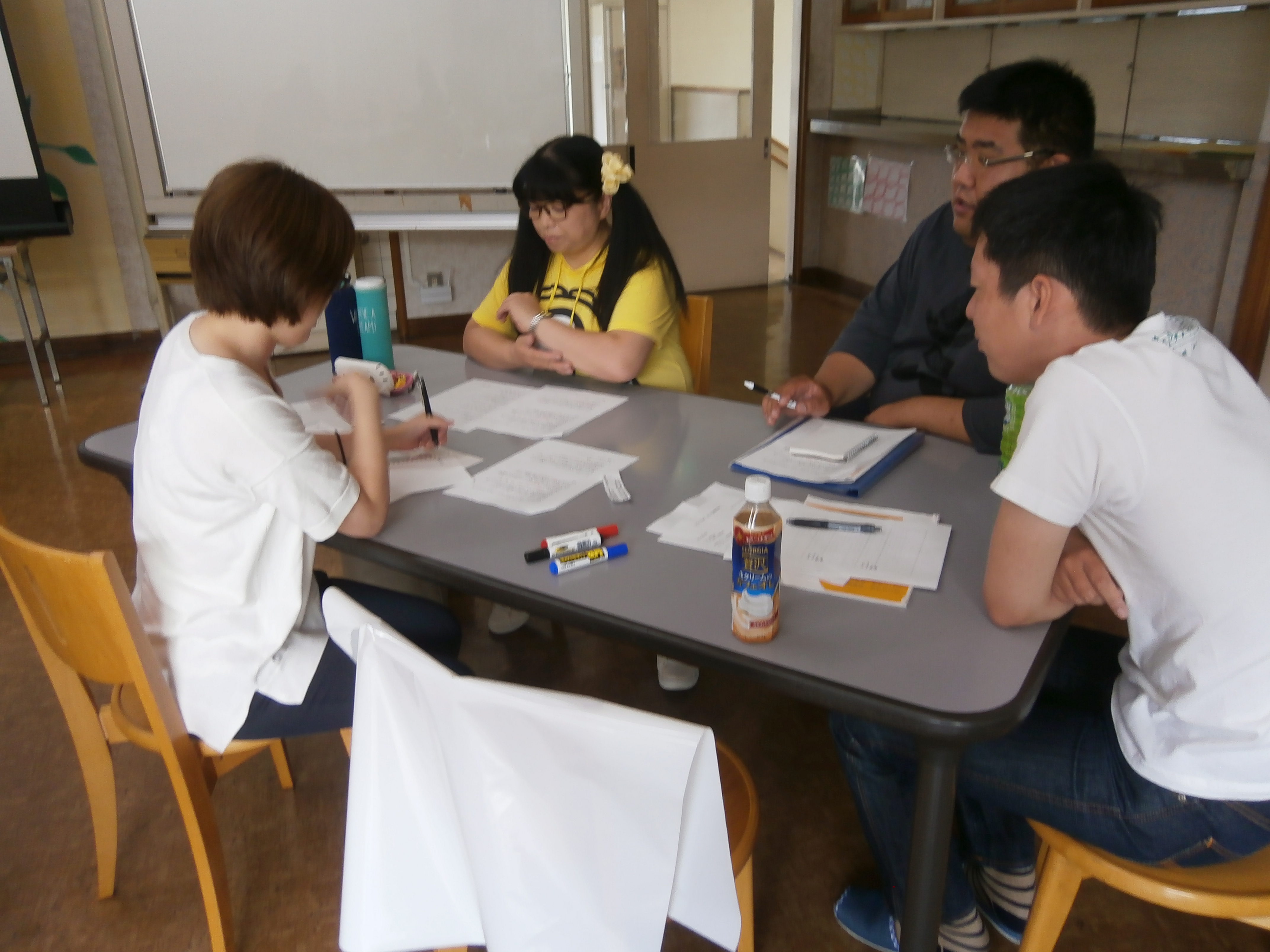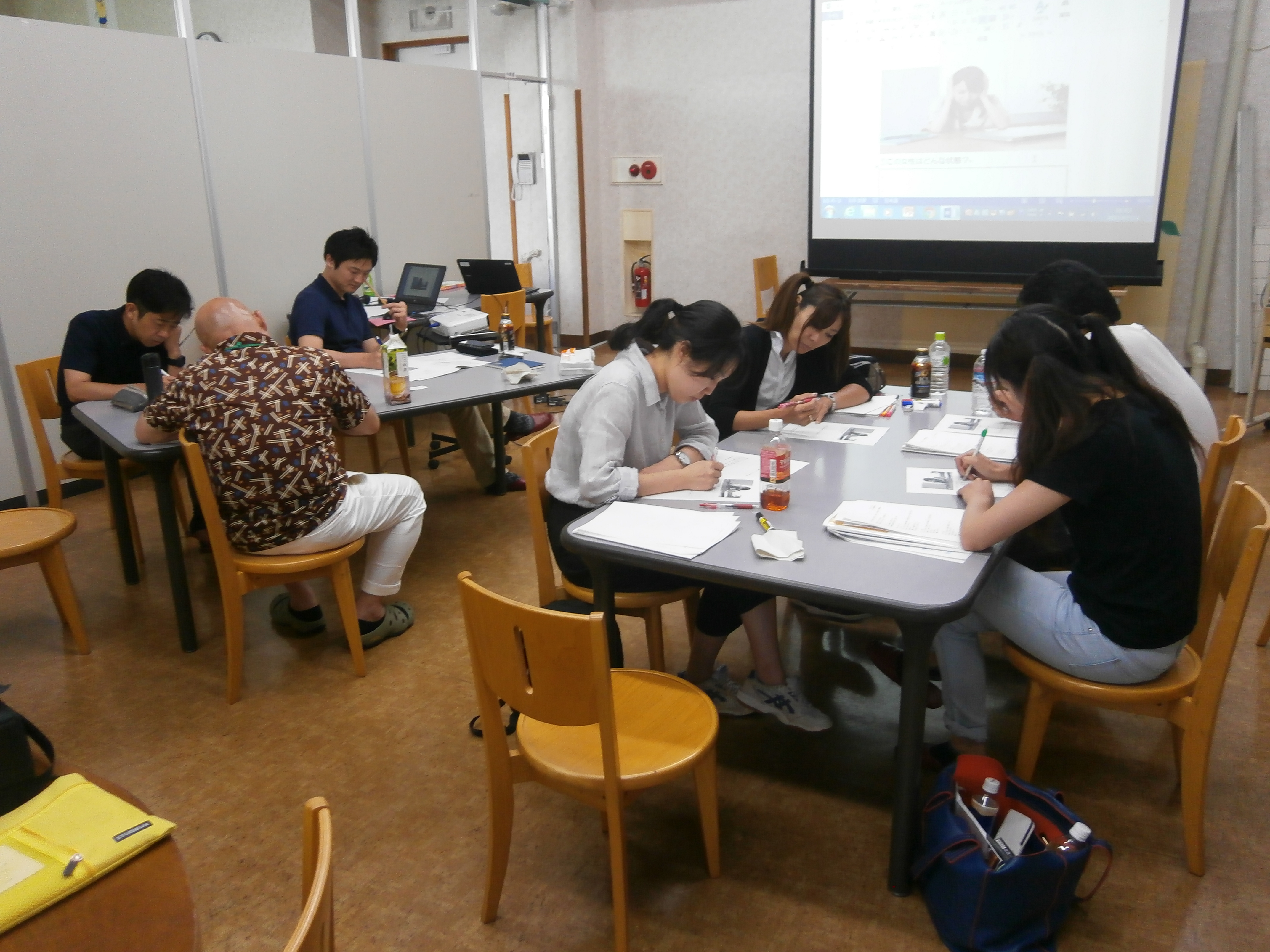 その後のケーススタディでは、耳を塞いでいる女性が「どういう状態」で、それに対して「自分は何が出来るのか」ワークシートに記入し、グループごとに意見を出し合い発表しました。