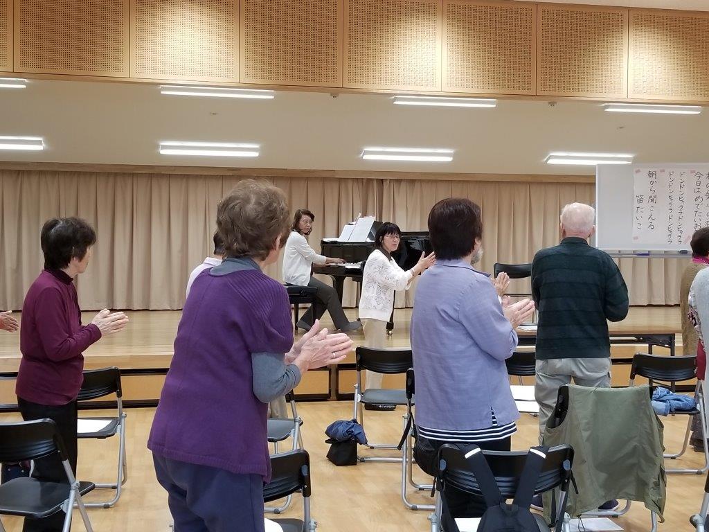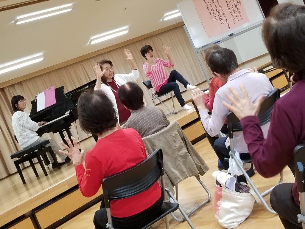 ももたろうや瀬戸の花嫁を歌いながら手や足を動かしたり、歌の間に一人ずつ野菜の名前を言ったりと頭の体操をしました☆ちなみに、リズム良く、他の人の言った野菜以外で!と条件付きでおこなうと皆さん意外と困惑されたり...