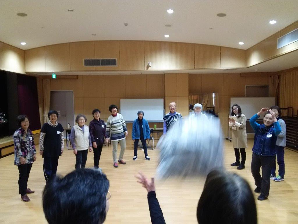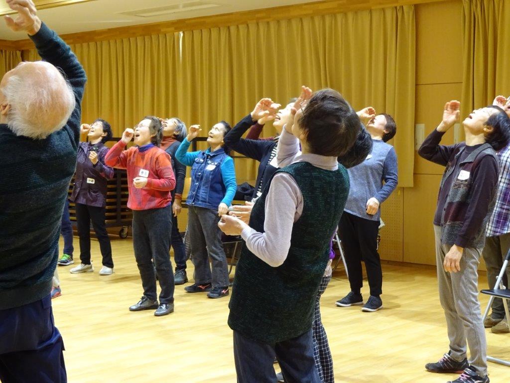 体操しているのかと思いきや「あっはっはっはは~!!」と笑いながら、身体の力を抜く...といった内容を、先生がお手本を見せてくれたのですが、最初は皆さん引き気味...(笑)