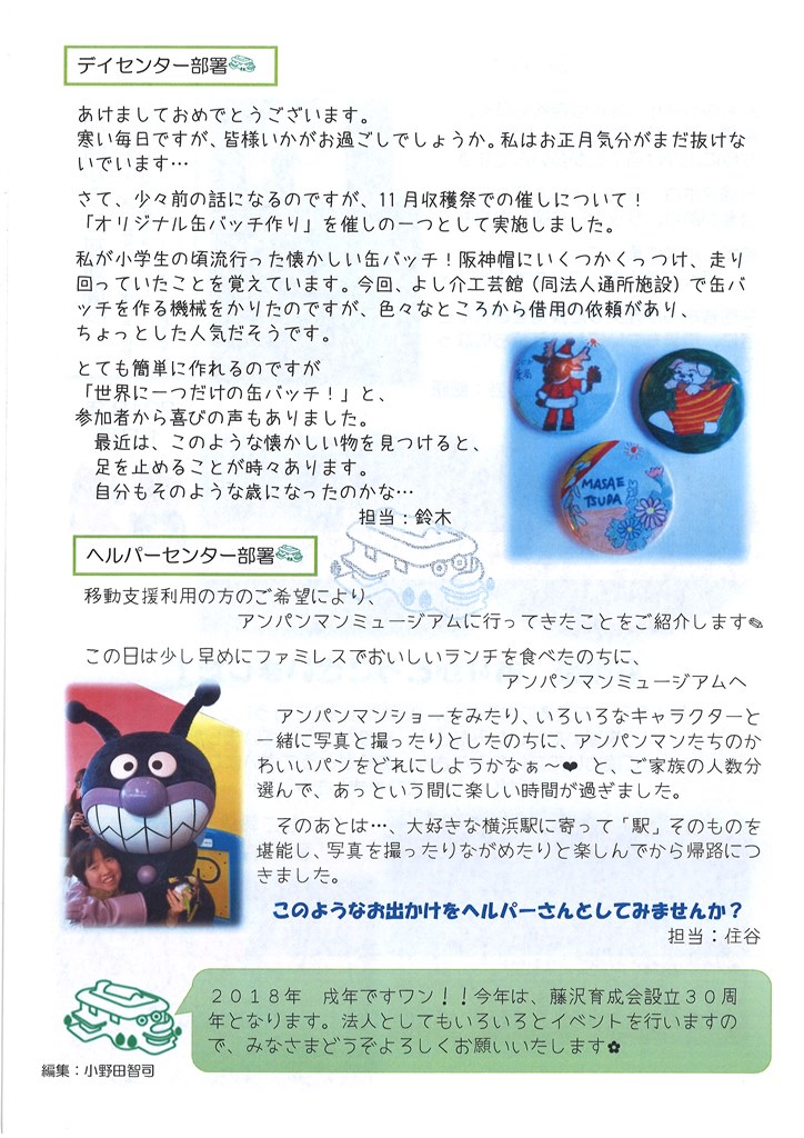 湘南ゆうき村の利用者の皆様、ご家族の皆様には後日紙ベースでお届けいたしますのでお楽しみに♪