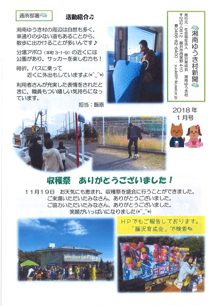 「湘南ゆうき村新聞」1月号を作成いたしましたので、お届けいたします☆