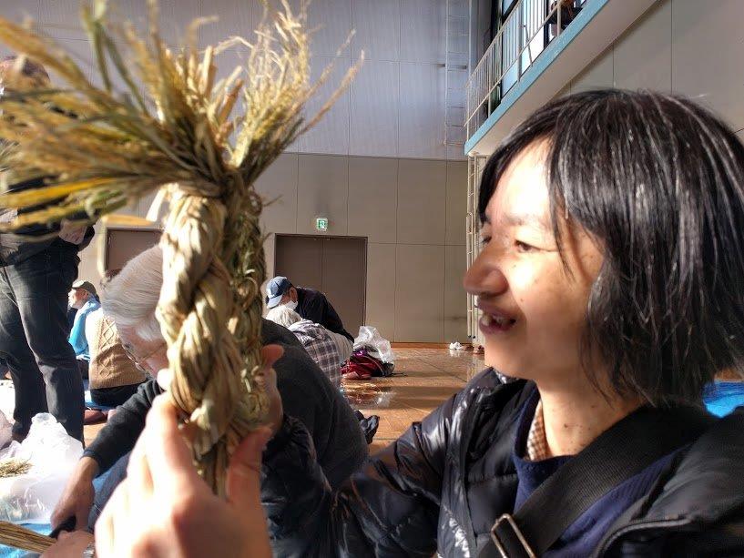 昨年末の12月23日、善行地区で開かれた「しめ飾りづくり」に、神社やお祭りが大好きな森さんが参加しました!