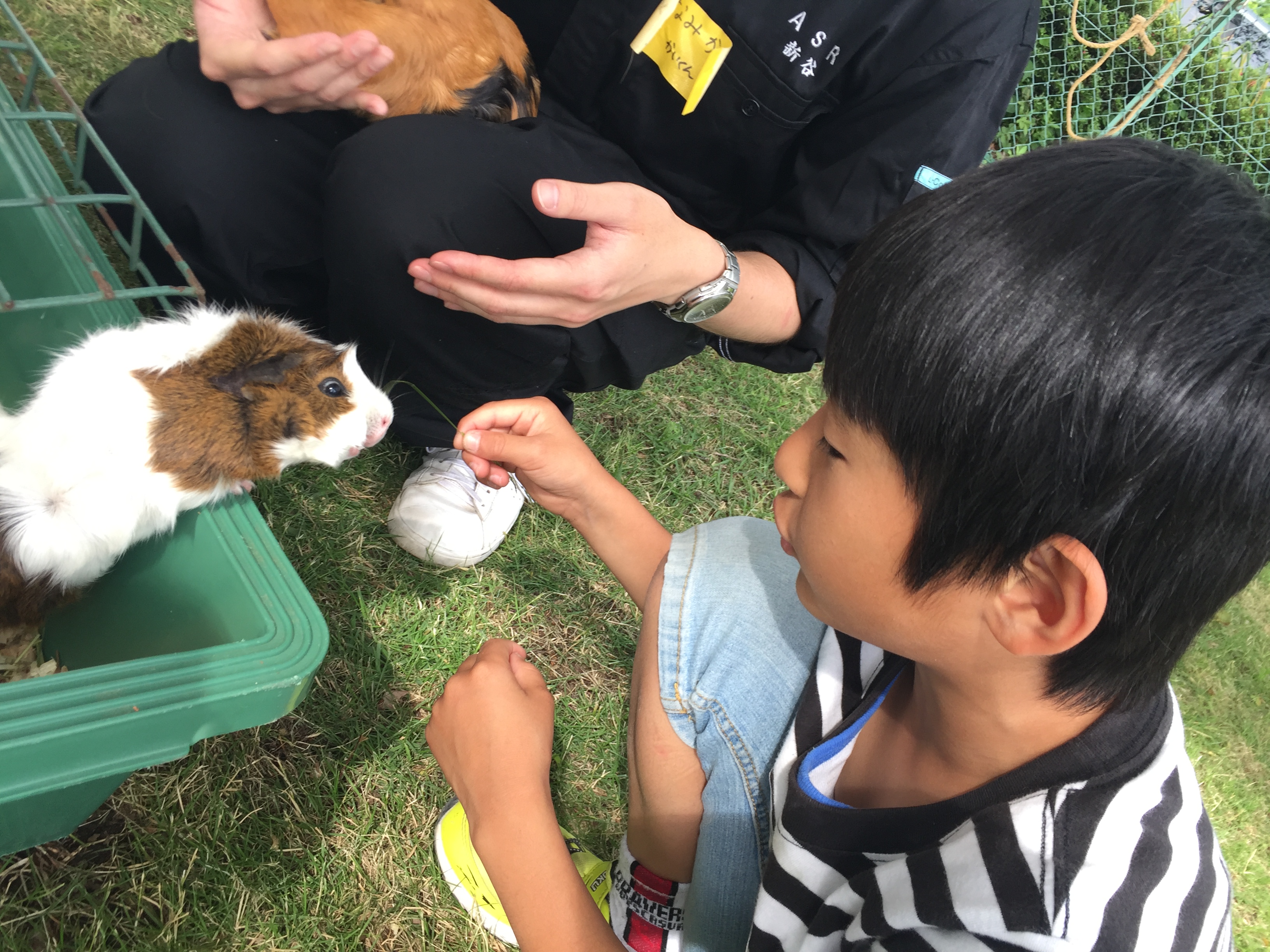 財団法人ハーモニーセンターの協力のもとポニー(馬)3頭とたくさんのモルモットが来てくれました。