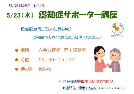 さて、次回の通いの場は「認知症サポーター講座」を開催します