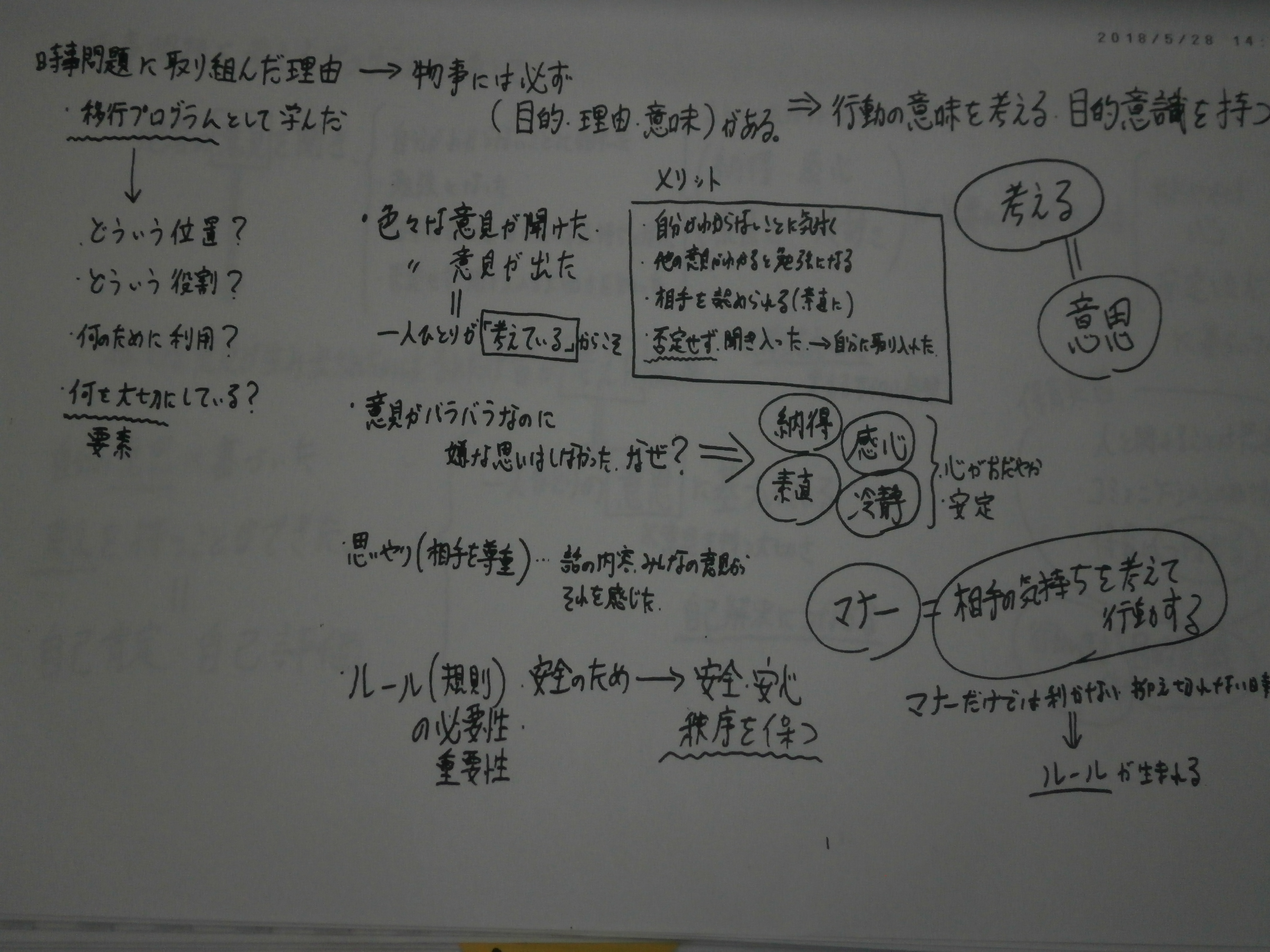 前回のスタッフ日記において時事問題をテーマにグループワークを中心としたプログラムを実施した内容についてご案内いたしました。そのプログラムを実施した翌日に時事問題をテーマに考えることの"目的・意味・理由"に気づくプログラム実施しました。このプログラムも就労移行支援事業のコンセプトの一つである"行動の意味付けと目的意識を持つことの大切さ"に基づいたものです。今回、時事問題に取り組んだことは、今回テーマに取り上げた『大学アメフトの悪質タックル問題』が単に『連日報道されているから』『テレビや新聞でもちきりの話題だから』ということではなく、みらい社・就労移行支援事業の目的とリンクしていて、"繋がっている"ということにメンバーが気づくことがプログラムの目的です。