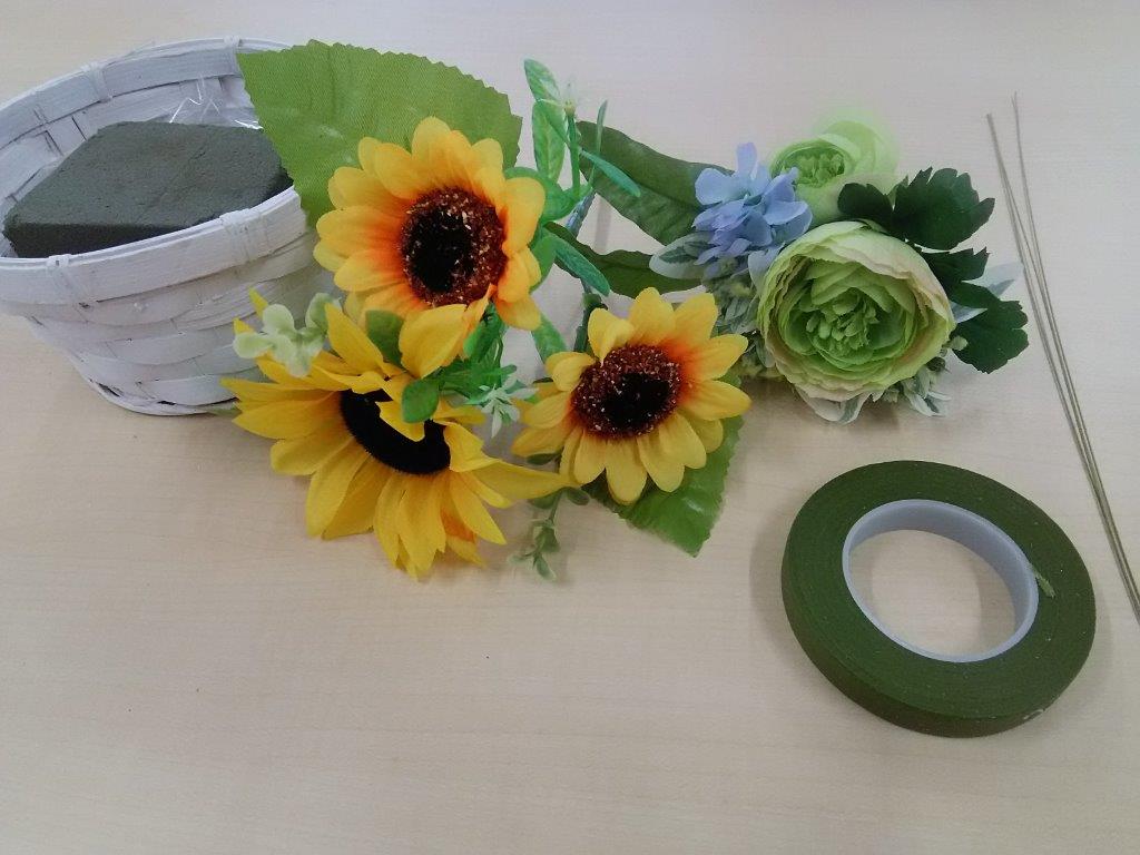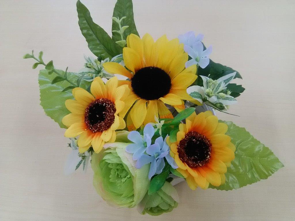 今回は、夏の花ということで≪❁ひまわり❁≫の造花を使って、