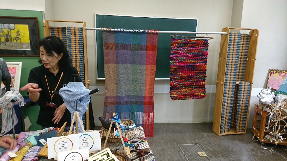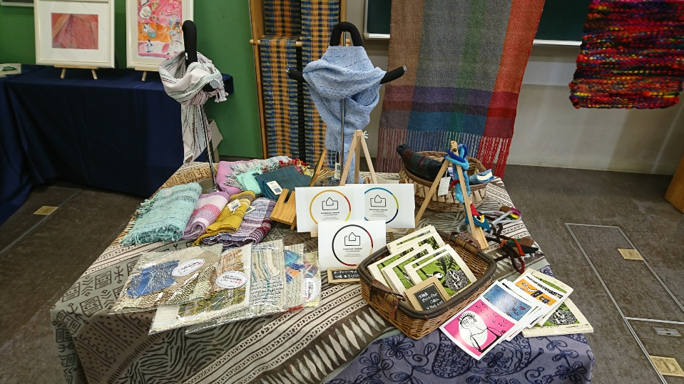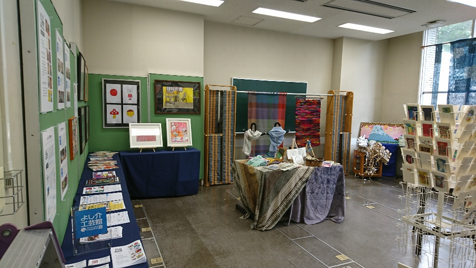 例年同様2つの教室を使い、一つの教室では、黒崎義介画伯とよし介工芸館の作品展示&オリジナルグッズの販売。