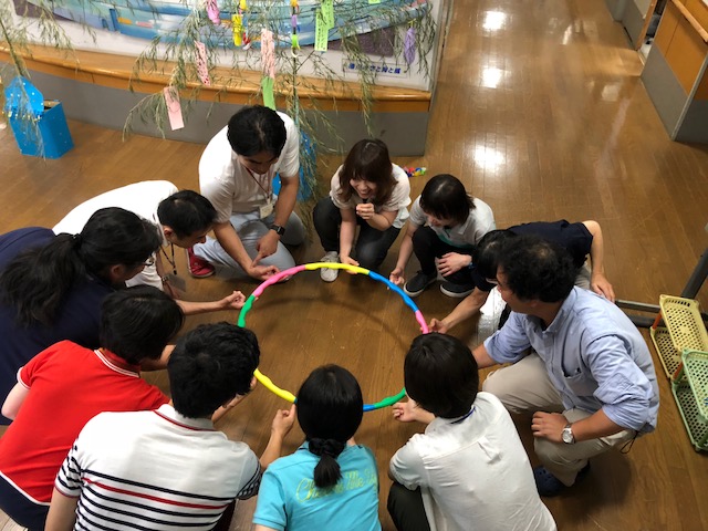 「ヘリウムリング」は、チームビルディングの手法の1つで、フラフープを使ったゲームです♪