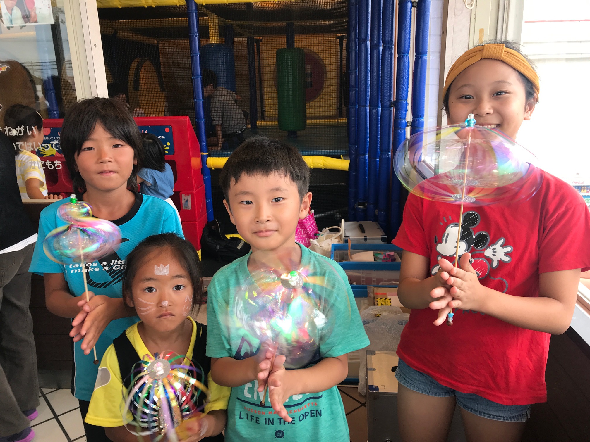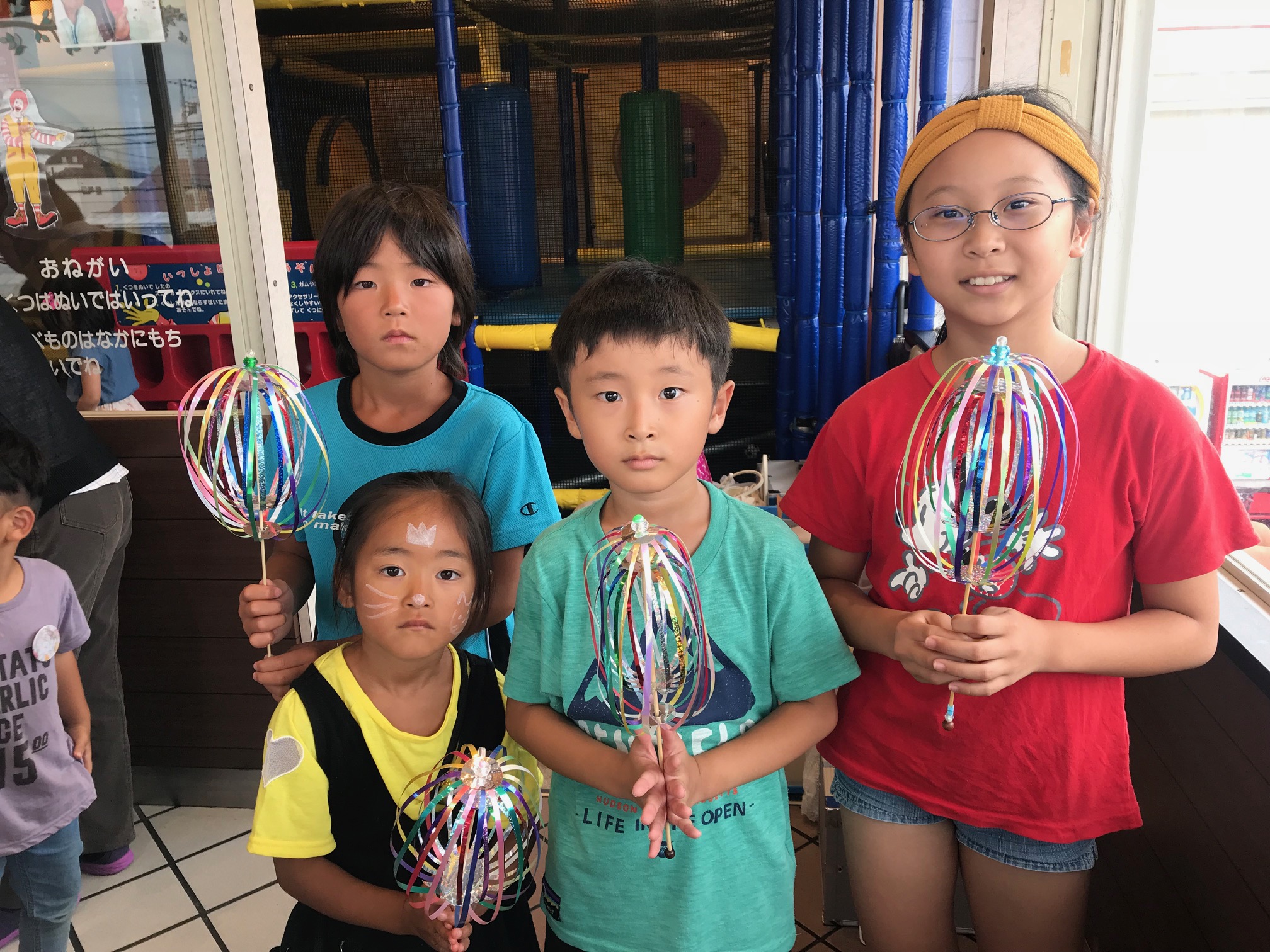 8月16日に夏休みの特別企画として、「学生さんと遊ぼう・くるくるレインボー作り」を予定しています。