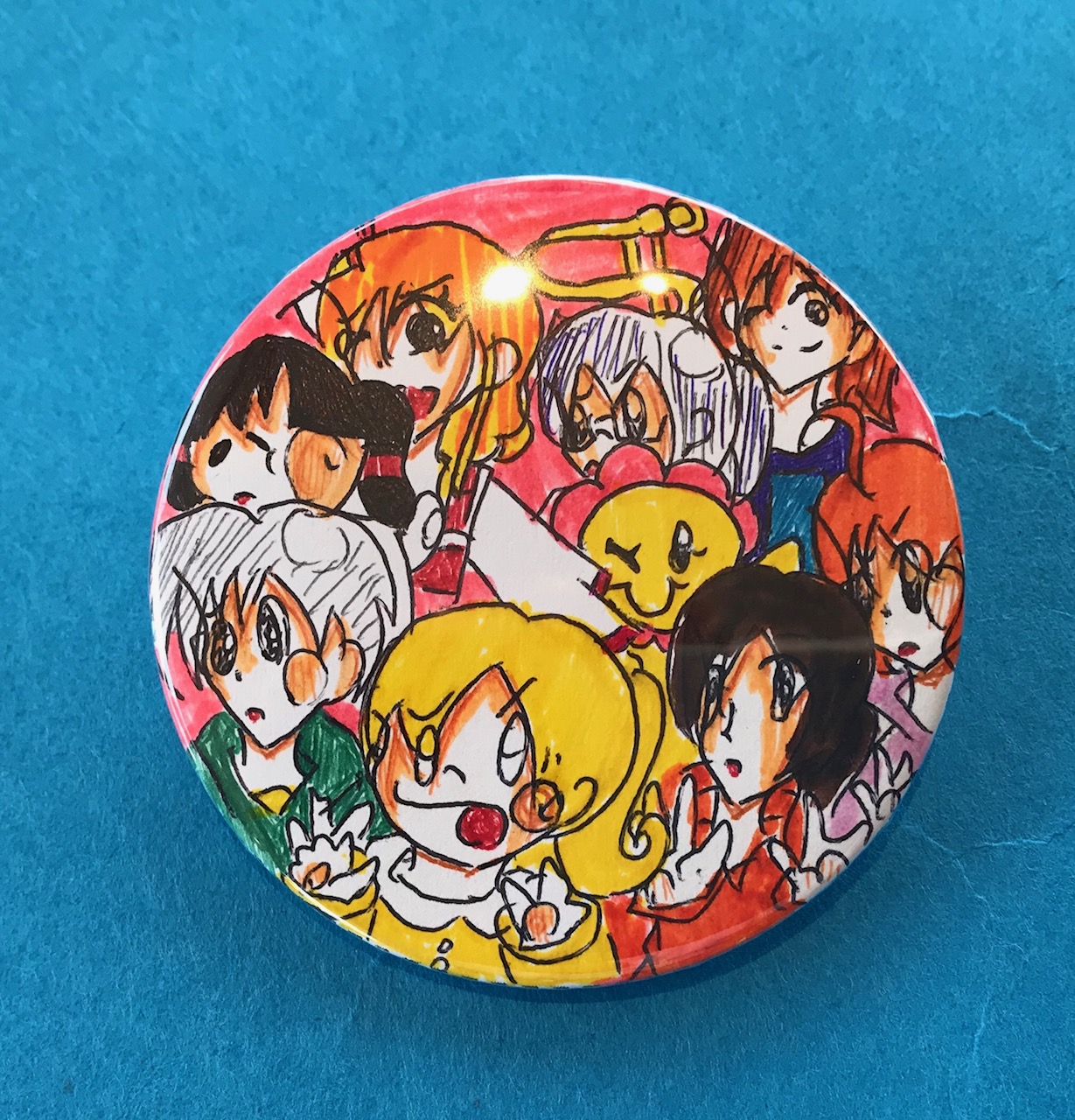 毎回好評の缶バッチ作りですが、この日はアーティスト顔負けの腕前を持つ小学6年生がやってきました。細密なイラストにびっくりしました。