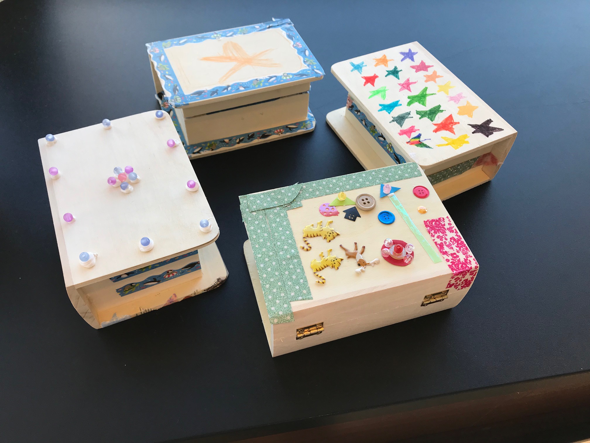 ホイップデコの特別プログラム。ボランティアのAさんの提案で飾り箱作りをしてみました。大好評で素晴らしい作品ができました。