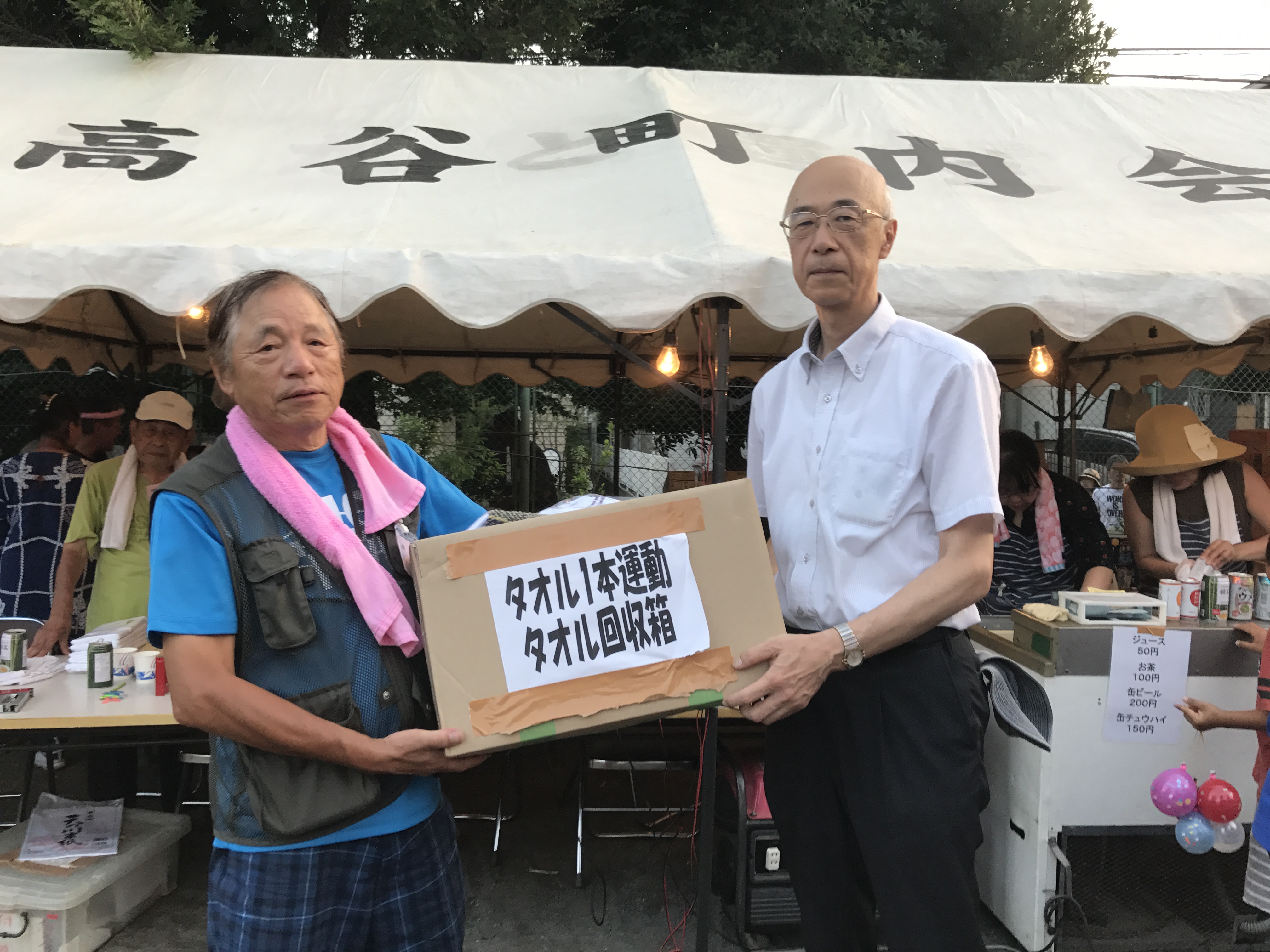 85日(日)に高谷町内会よりタオルの寄贈を受けました。