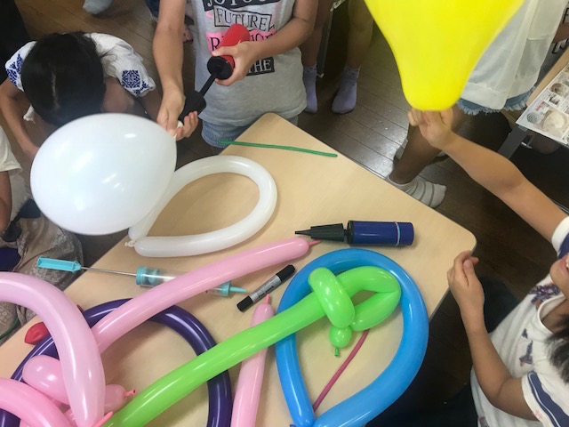 8月22日、俣野小学校の敷地内に設置された建物で活動している学童クラブ「なかよし児童クラブ」の夏休みイベントに呼ばれて、缶バッチ作りとバルーンアート作りのプログラムをお子さんたちと一緒に行ってきました。
