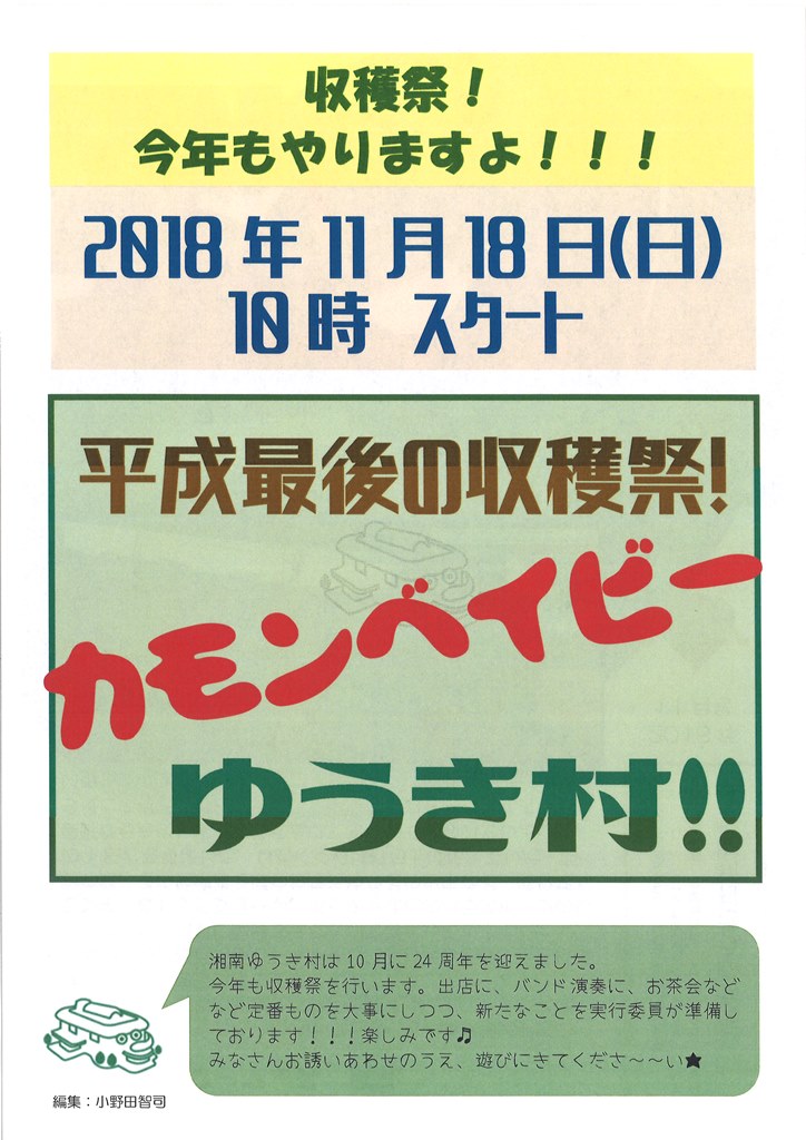 「湘南ゆうき村新聞」11月号を作成いたしましたので、お届けいたします☆