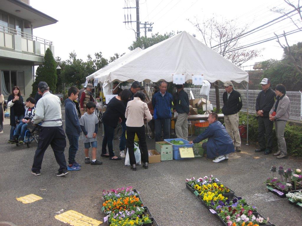 西俣野上町内会さんによる豚汁に、野菜・鉢花の販売