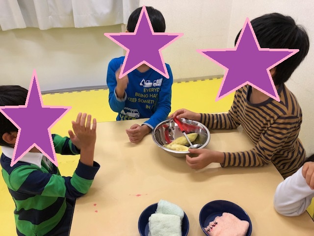 今回は、皆さんで相談して協力して、おいしいスウィートポテトが完成しました!!自分たちで作ったおやつをおいしくいただきました!!また随時、楽しい活動報告をしていきます!!