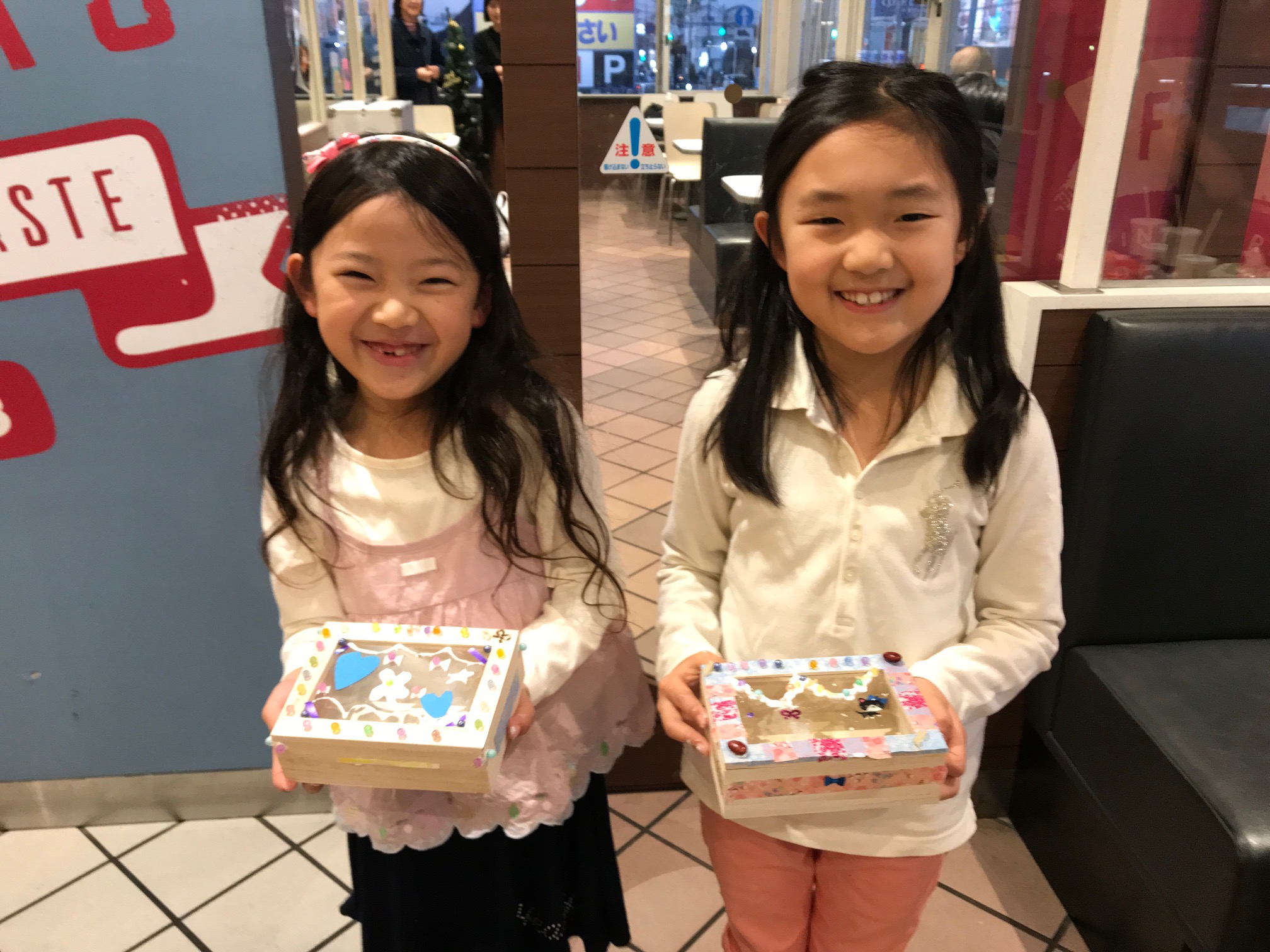1回目はホイップデコの箱作り。たまたまお母さんとマックを食べに来て、ホイップデコのプログラムを見つけて入ってくれました。かわいい化粧箱をオリジナルデザインで作って、大満足でした。次の週も来てくれて、今度は缶バッチ作りに挑戦。自分の分だけでなく、ご家族やお友達にプレゼントする分もと5つほど作って持って帰っていただきました。またのご来場をお待ちしています。
