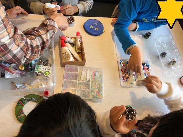 その後 松ぼっくりのクリスマスツリー・リース等作りたいものを選び作成しました。個性あるステキな作品ができあがりました。