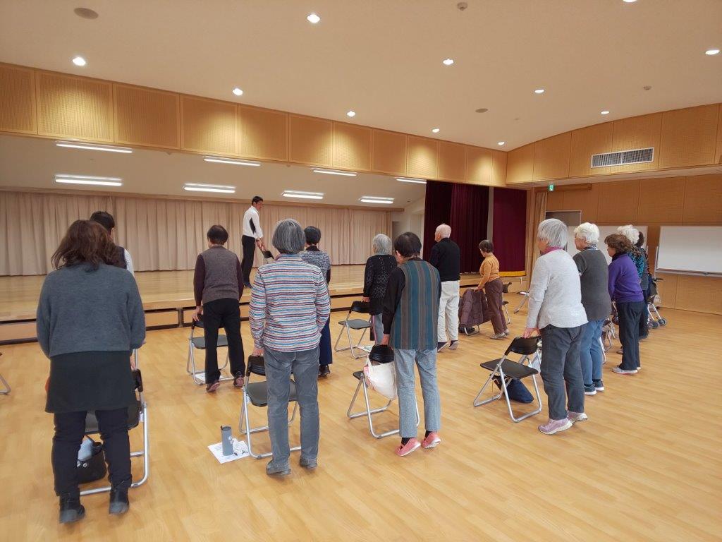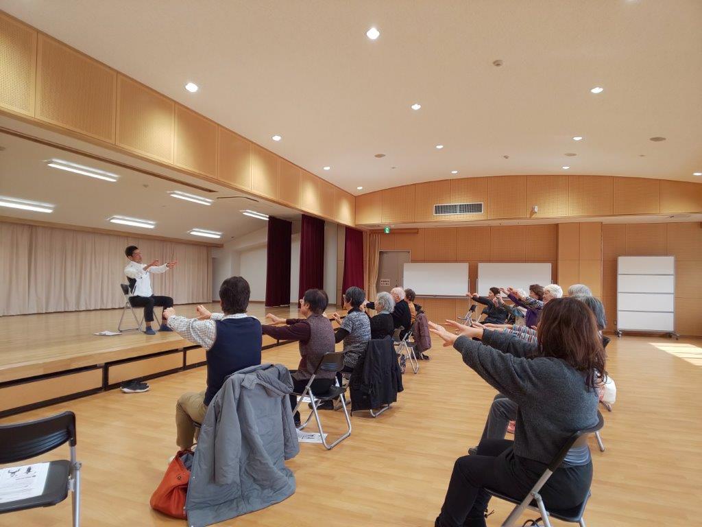 岡田先生の指導の下、いくつかの動きを混ぜながら体操を行ったり、左右違う動きをしたりと脳の活性化を行い、運動機能を維持するために筋力トレーニングをしたりと、盛りだくさんな内容でした!