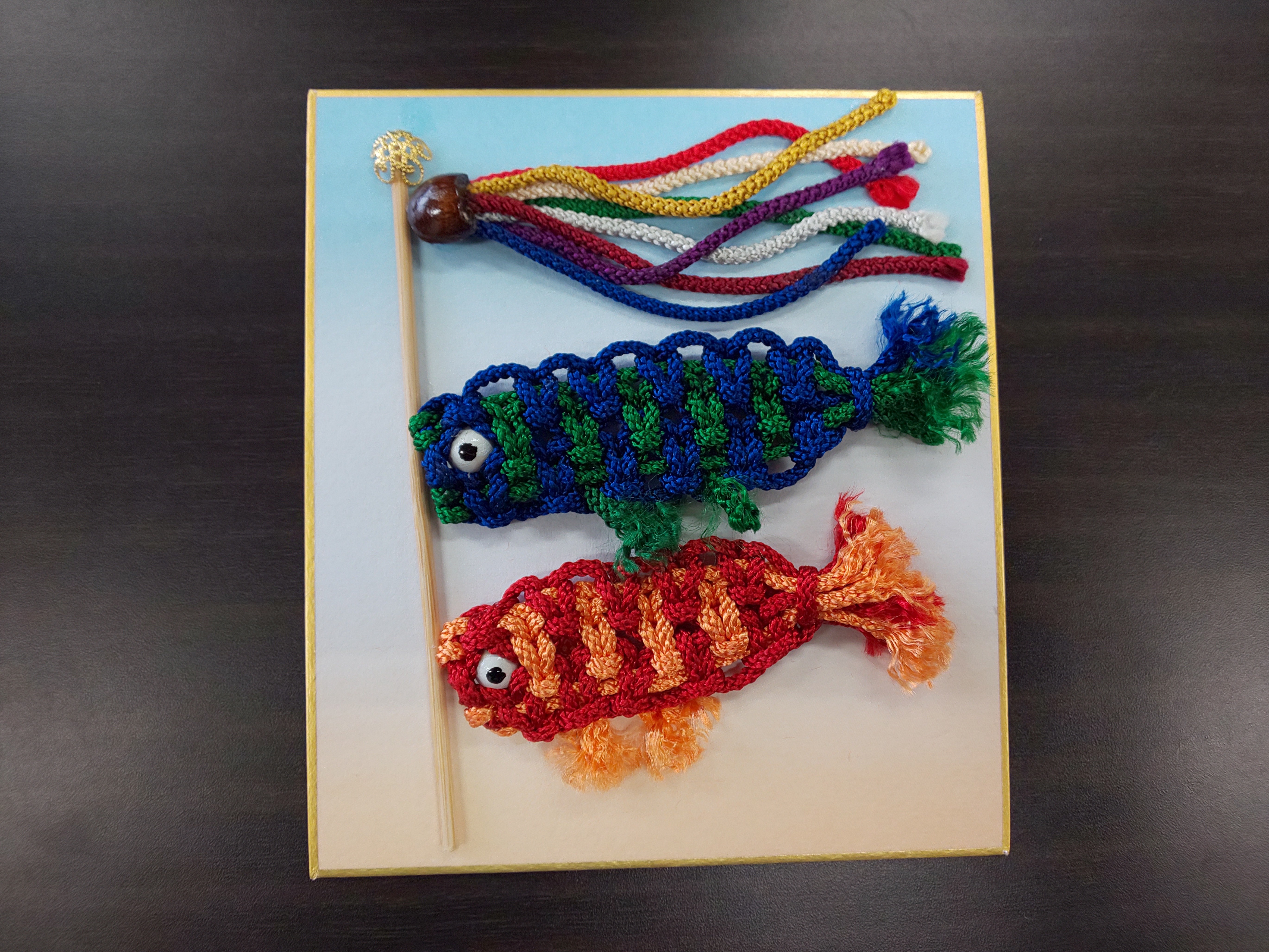 慣れるまでは難しく、これがこいのぼりになるの??...と不安になる場面もありましたが、先生に教えていただいたり、隣同士で教えあったりしながらだんだんこいのぼりが編みあがっていきます。