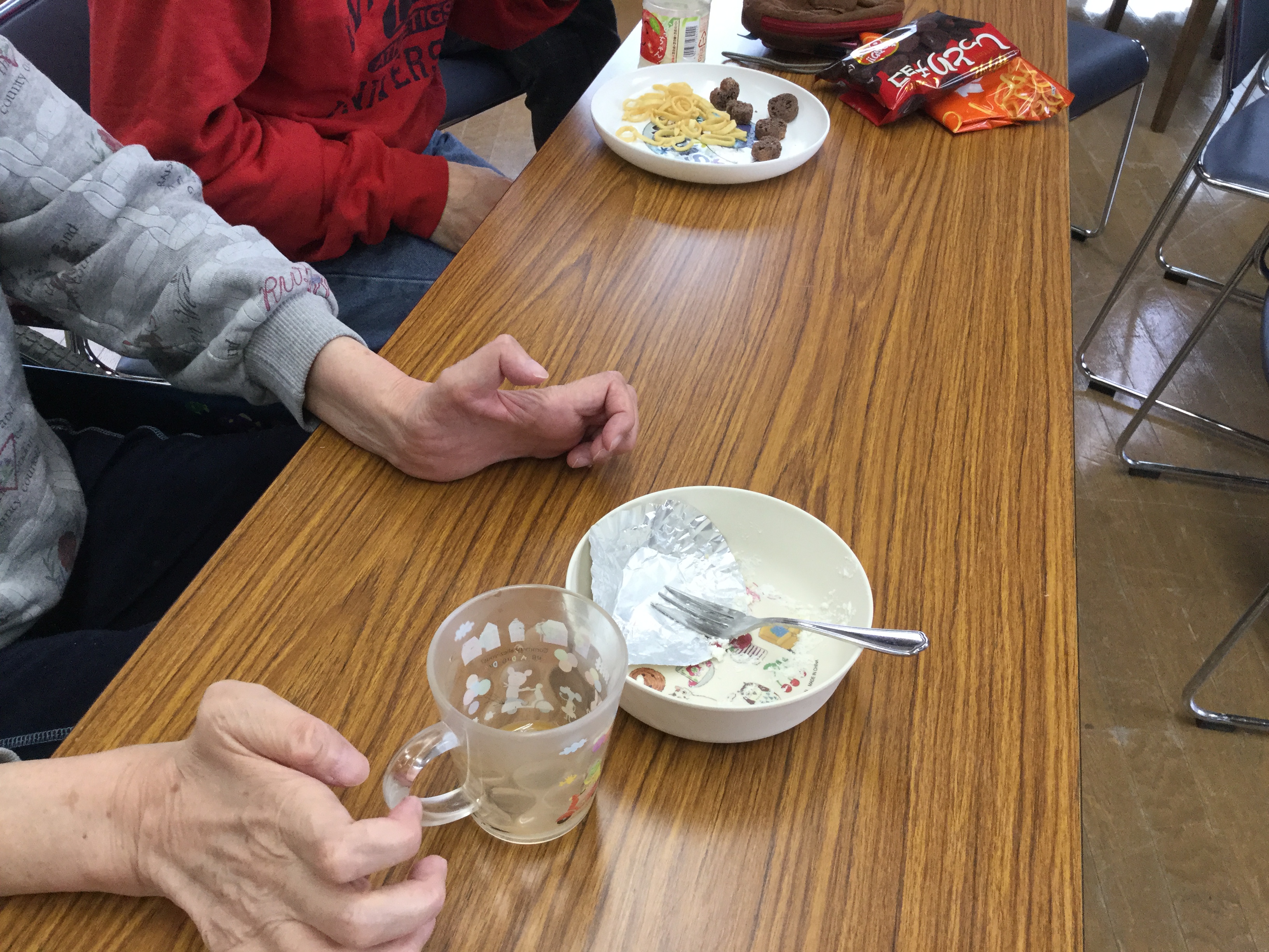 皆さん持ち寄ったお菓子やクッキーを食べながら