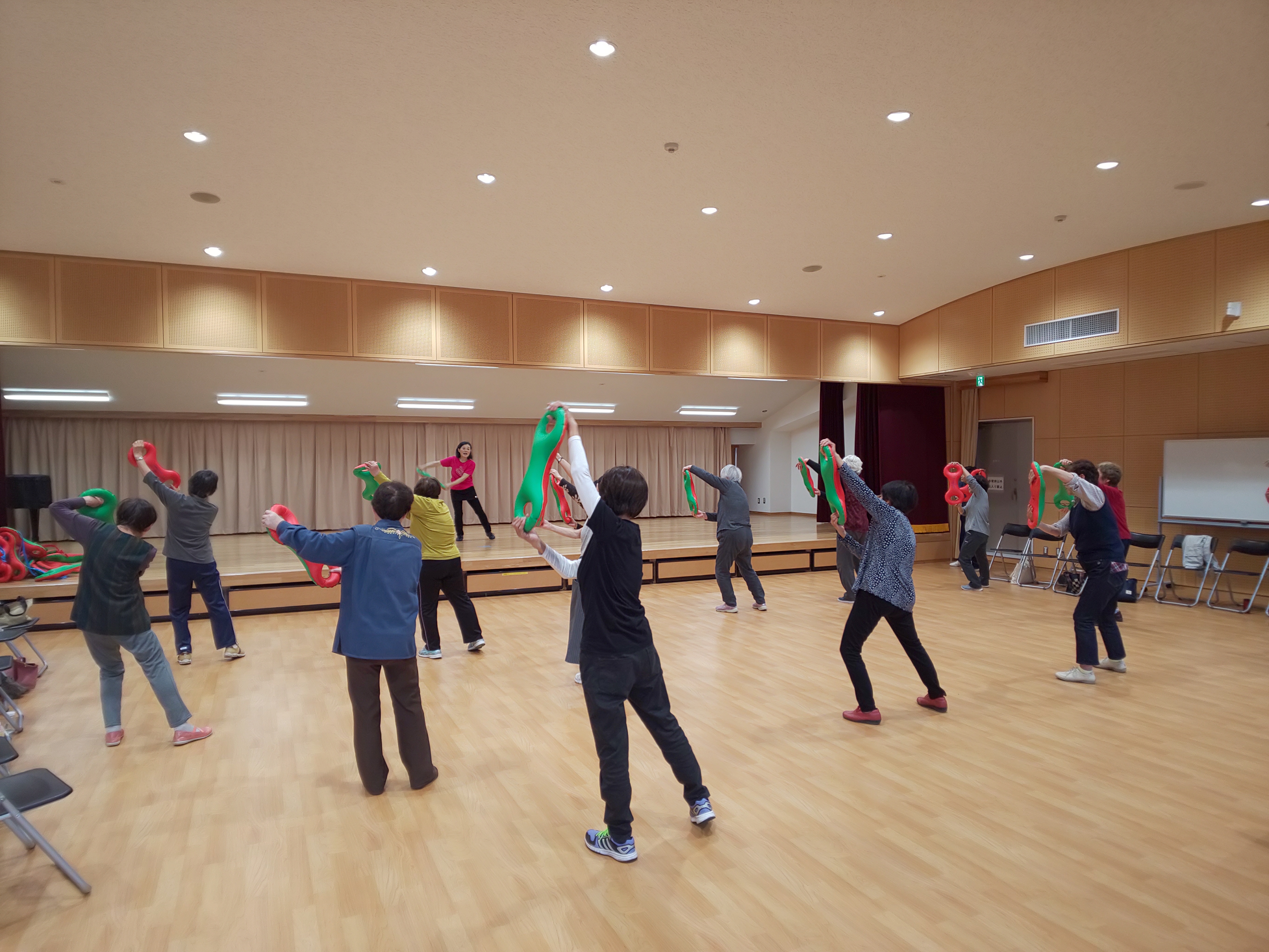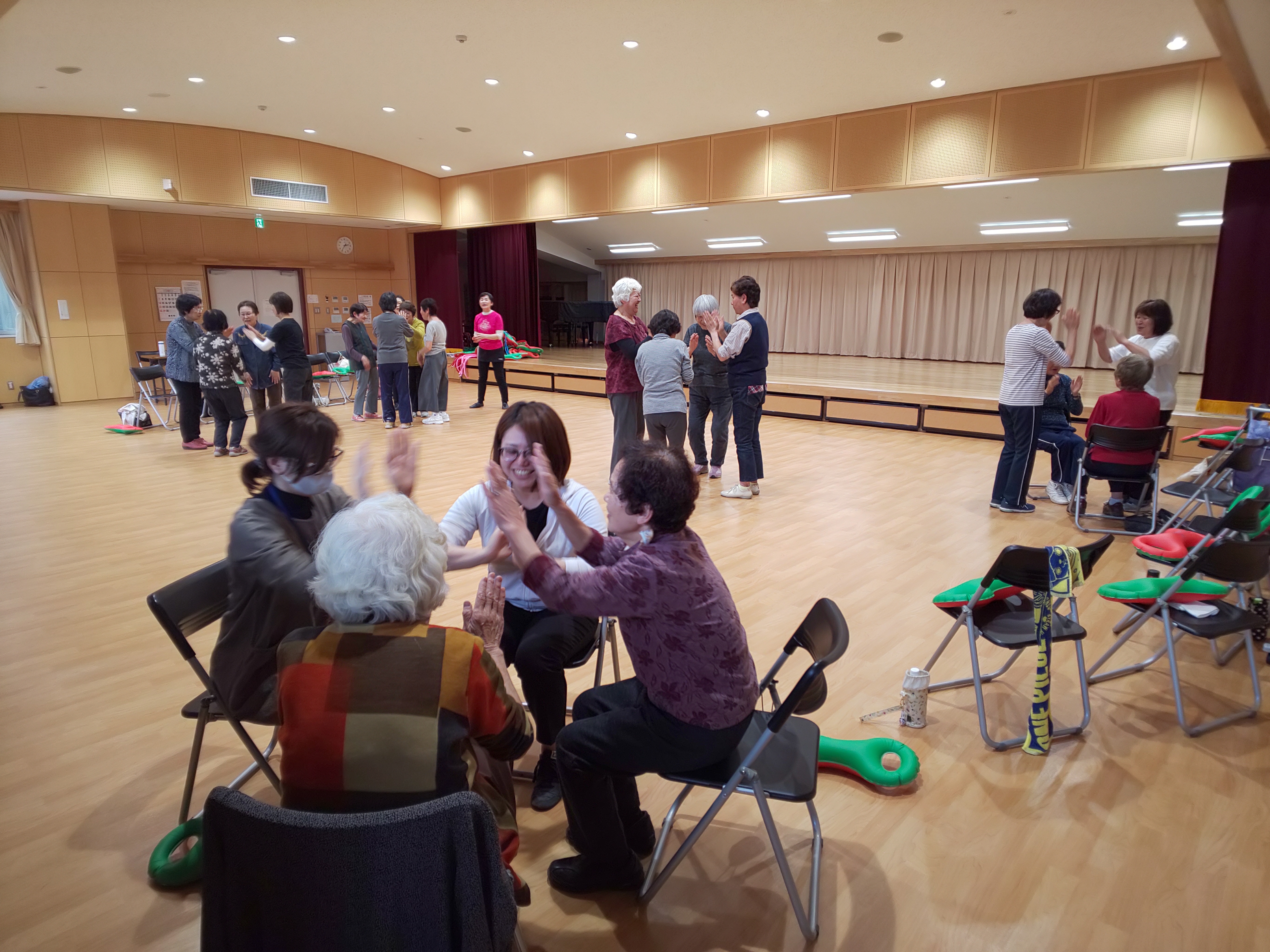 また、道具を使わない運動でも、リズムに合わせて周りの方とハイタッチをしたり、皆さんで歌いながら身体を動かしたりと盛りだくさんの時間を、参加しやすい形で楽しむことができたと思います。