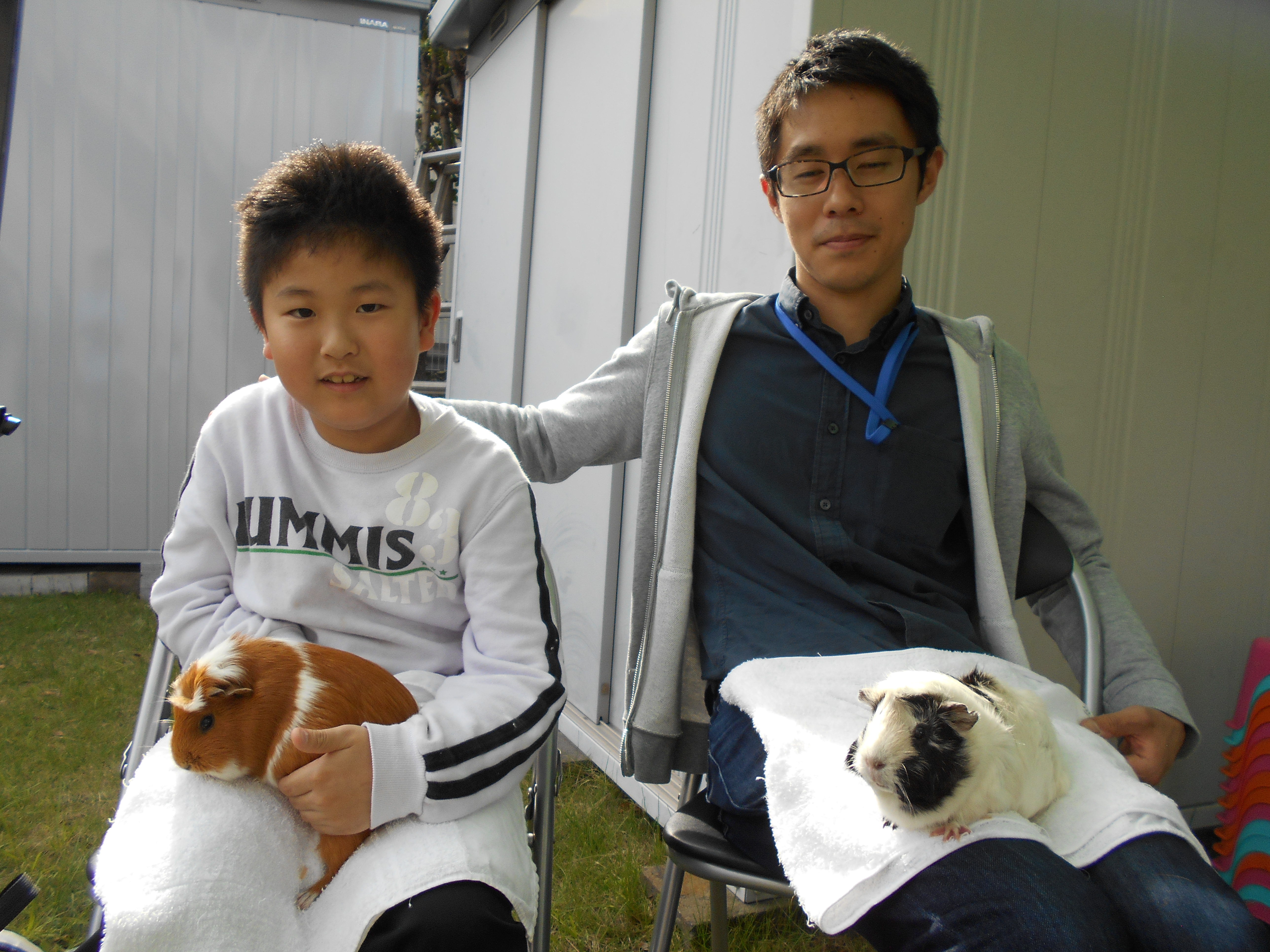 乗馬後も、いつも協力していただいている日本大学の学生さんに室内や外で遊んでもらったり、屋外で可愛いモルモットに触れたり楽しい時間を過ごしています。