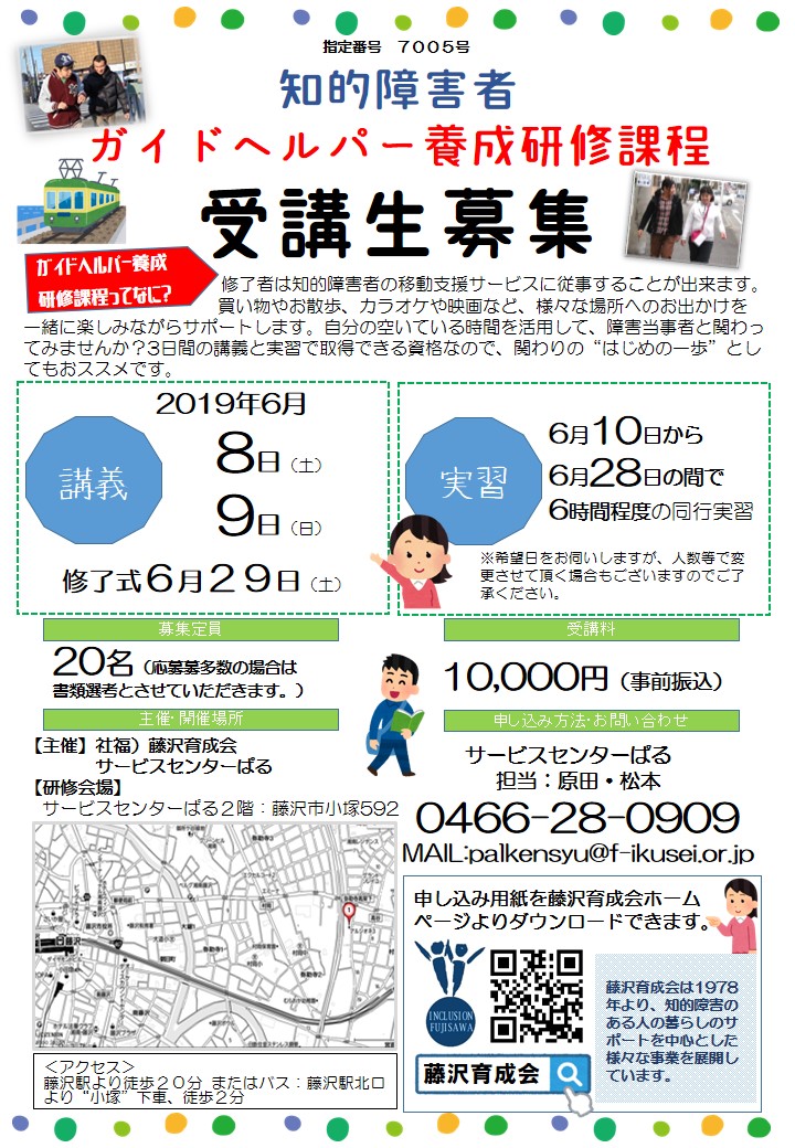 「2019年度第1回知的障害者ガイドヘルパー養成研修開催のお知らせ」