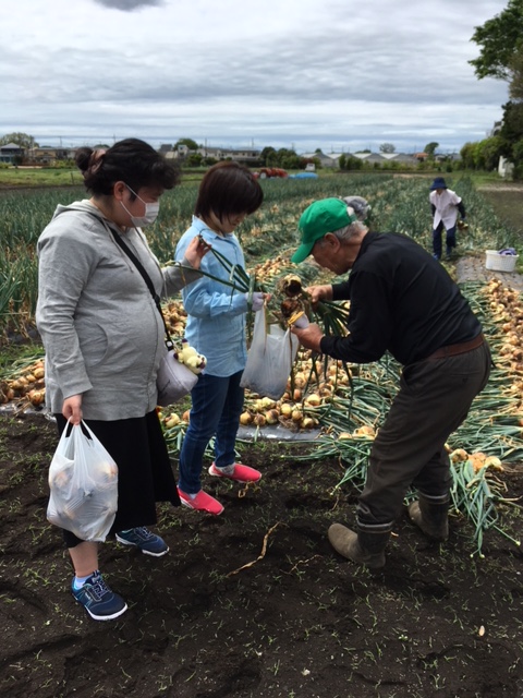 ●5月には、近隣の畑で玉ねぎの収穫をさせていただきました。