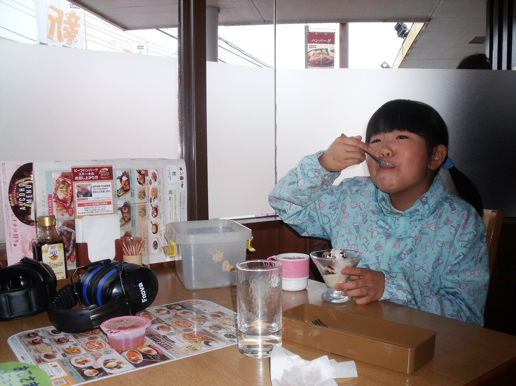 ファミレスでは、メニュー表を見て自分の食べたい物を選んで注文しました。頼んだ物がテーブルに来ると、みなさんパクパクと食べて笑顔があふれていました。