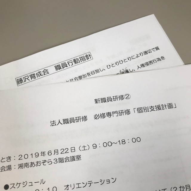 6月22日は、入職1年目の常勤職員に対し、【職員行動指針】と【個別支援計画】について研修を行いました。