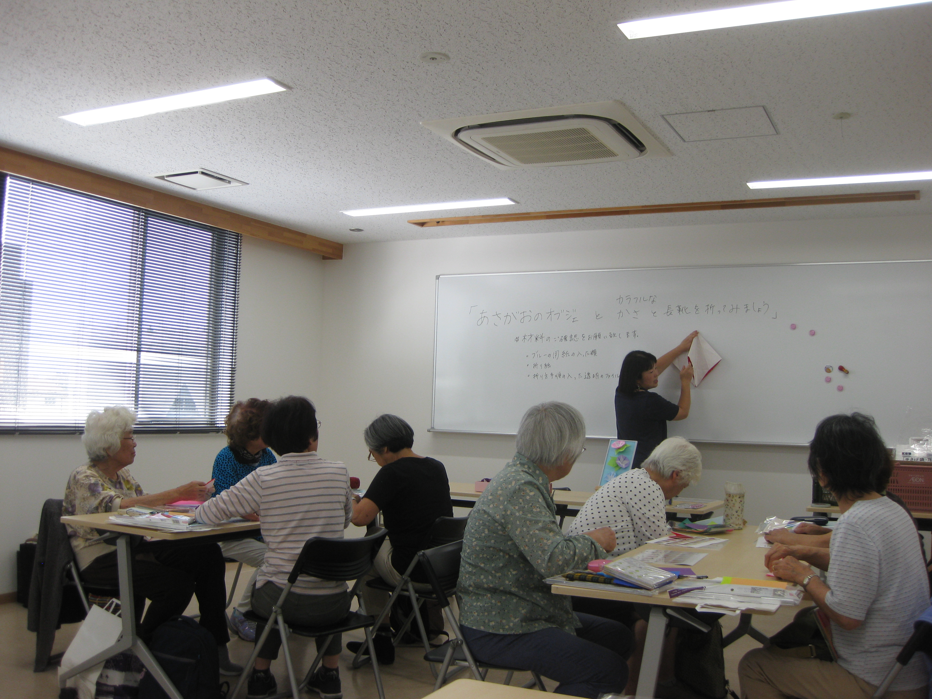 けれども、さすが先生!一人ひとりの折りかけの朝顔を覗いて、「合ってますよ」と声をかけてくださったり、折り目の付け方や折り方の確認を丁寧に教えてくださいました。