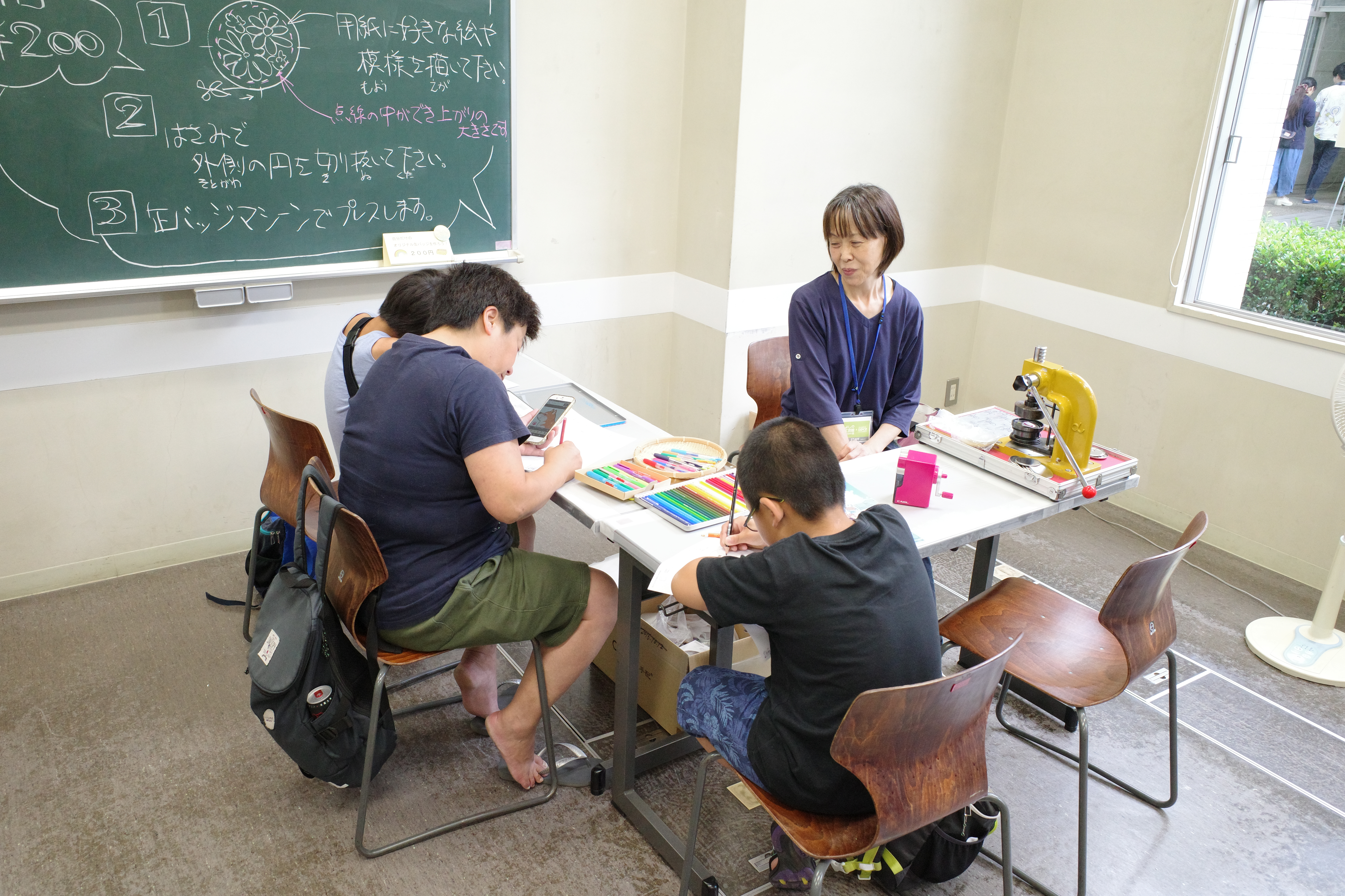 ワークショップでは、【ビーズアクセサリー】【はた織り体験】【オリジナル缶バッジ作り】【七夕吹き流し作り】をやりました。