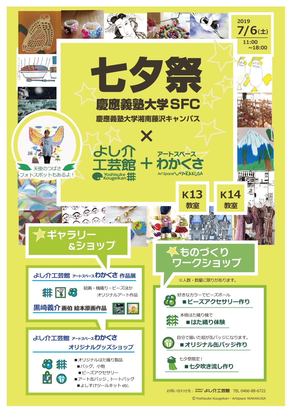 7月6日(土)に、慶應義塾大学七夕祭に『よし介工芸館』+『アートスペースわかくさ』は「ギャラリーショップ」と「ものつくりワークショップ」で教室企画に参加しました。